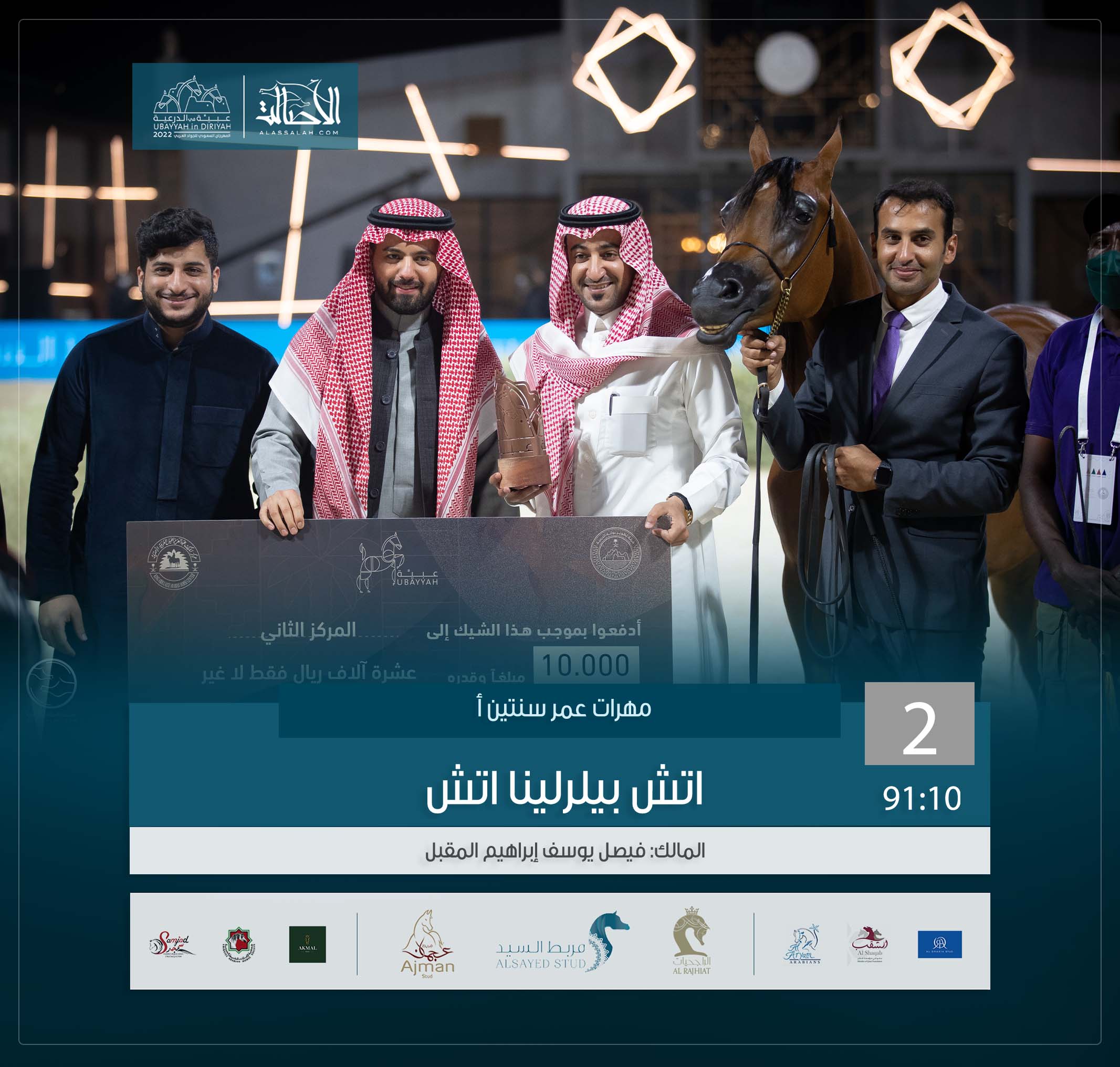 المركز الثاني: اتش بيلرلينا اتش (اف اس ماتيو x اف بيناسلي اف ) مربط فيصل يوسف إبراهيم المقبل.