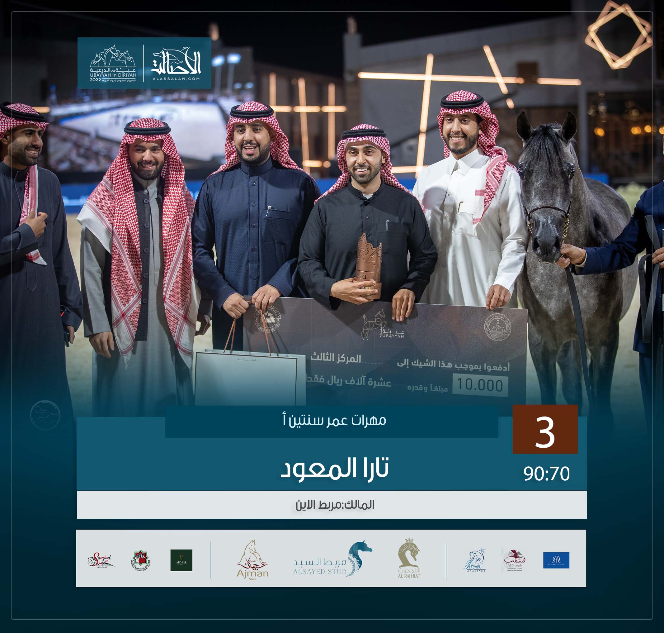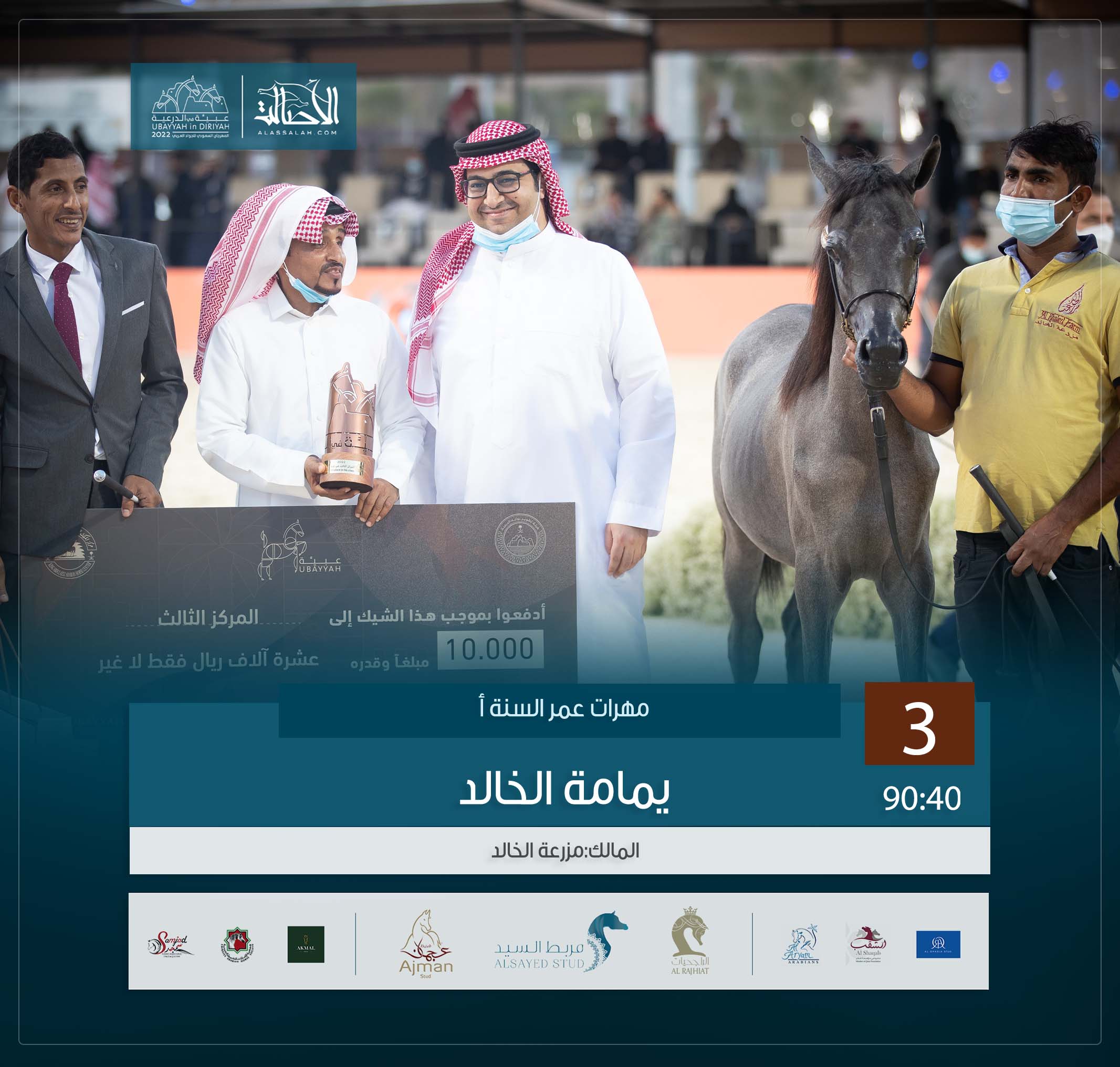 المركز الثالث: يمامة الخالد (ميتور ارابكو x مودة الخالد) مزرعة الخالد.