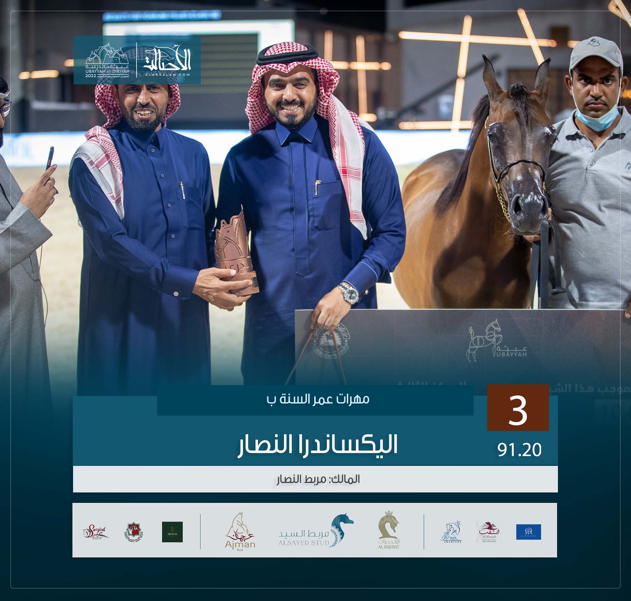 المركز الثالث: اليكساندرا النصار (ميتور ارابكو x بيان الخالد) مربط النصار.