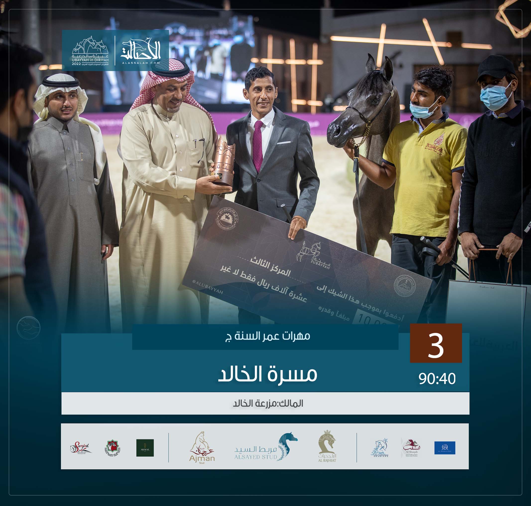 المركز الثالث: مسرة الخالد (ميتور ارابكو x يمامة الخالد) مزرعة الخالد.