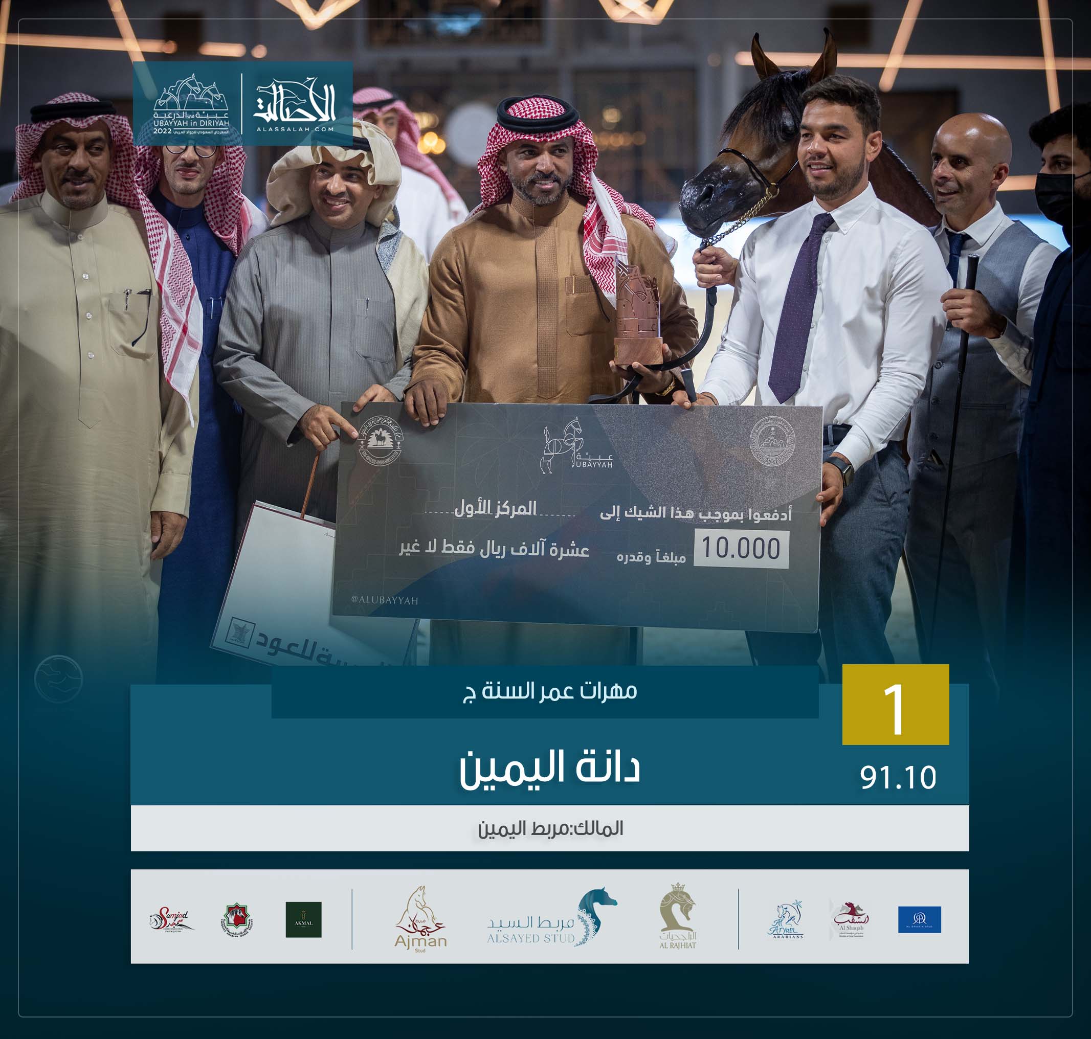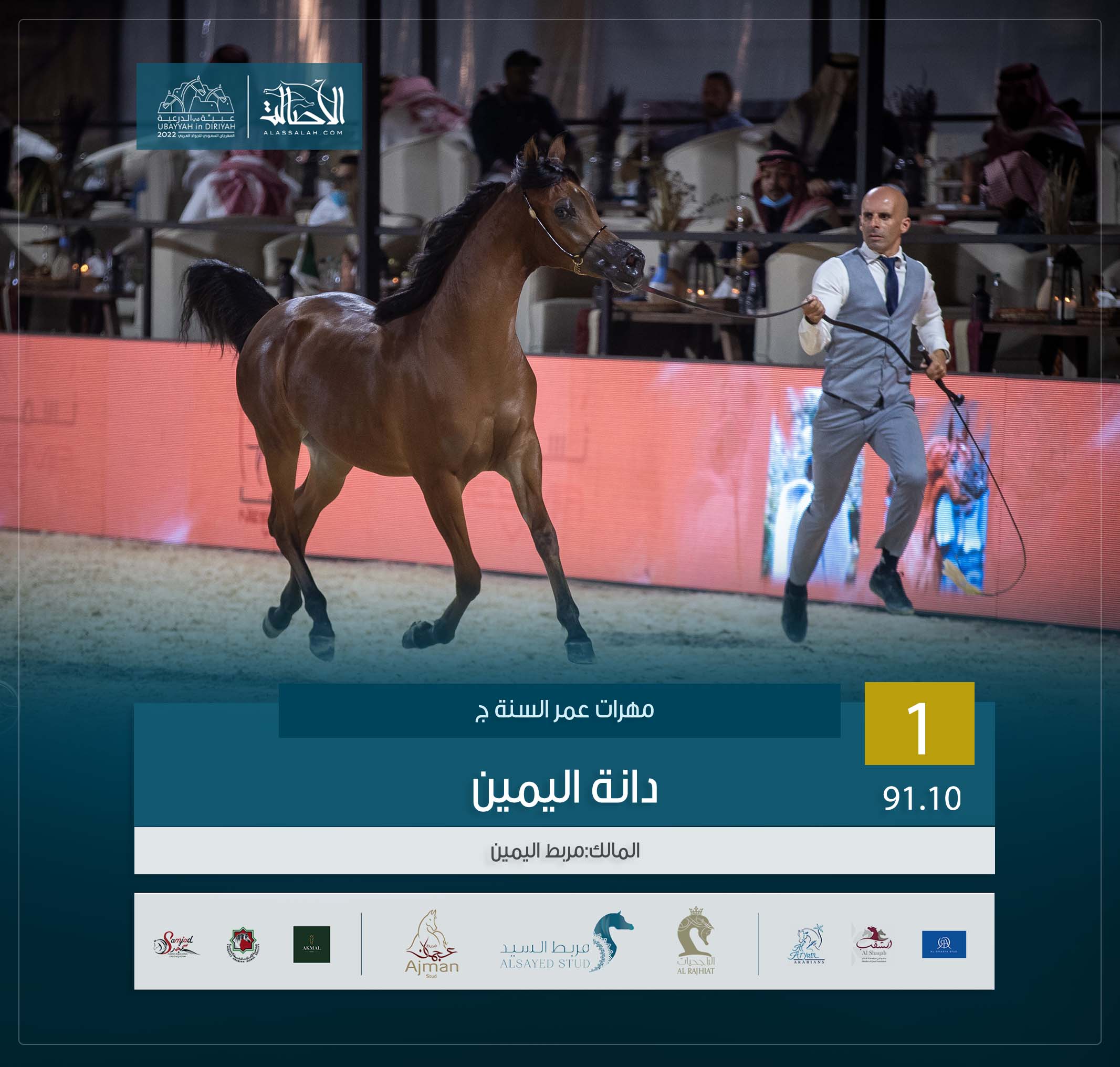 المركز الأول: دانة اليمين (فاليدورو x شموخ العناية) مربط اليمين.