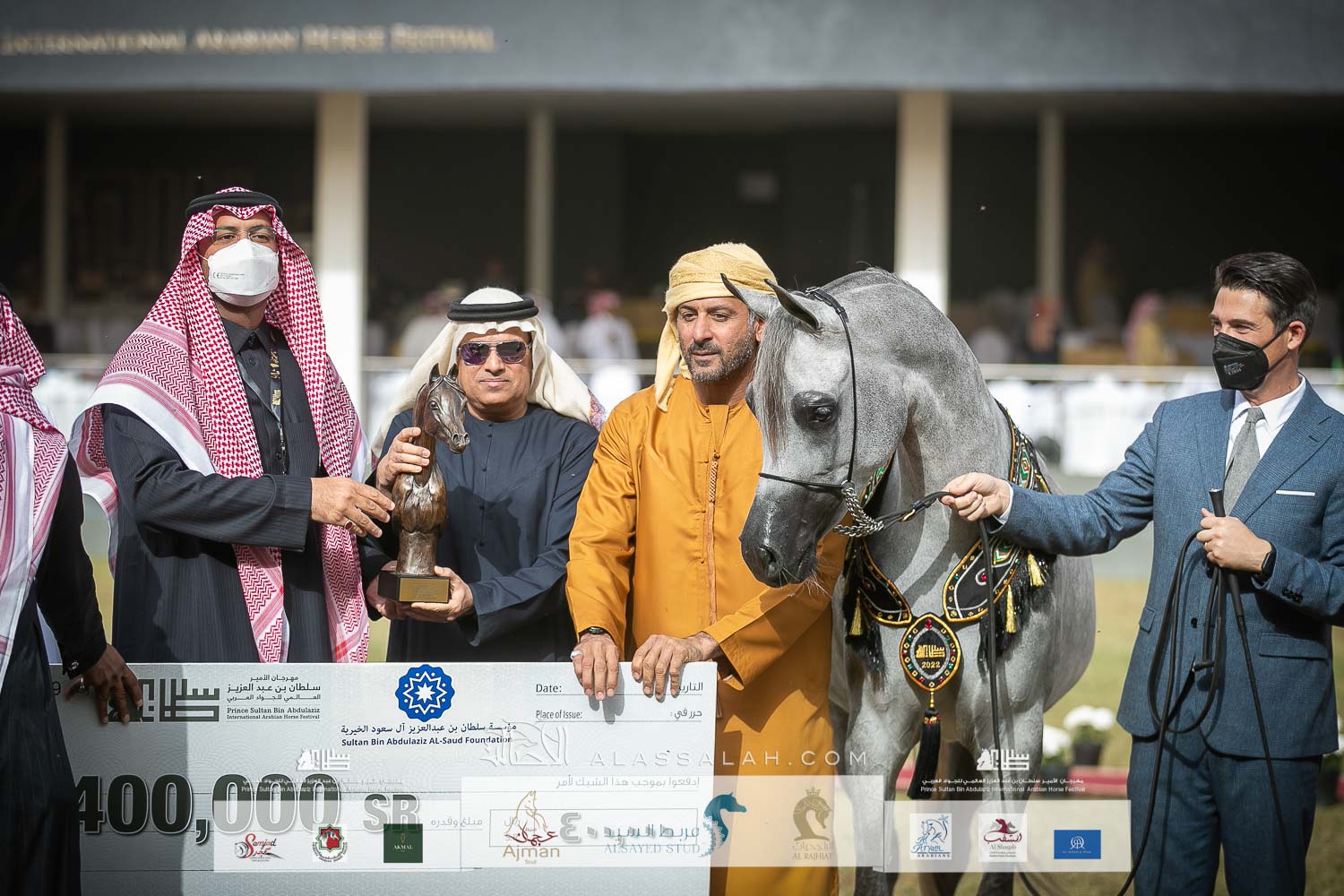 حصدت خيول مربط دبي 4 ألقاب ملونة خلال ختام بطولة جمال الخيل العربية الأصيلة ضمن النسخة التاسعة لمهرجان الأمير سلطان بن عبدالعزيز آل سعود العالمي للجواد العربي 2022 ، حيث نالت خيول المربط ذهبيتين وفضية وبرونزية. وافتتحت الألقاب الذهبية دي نجلاء (دي سراج x إيلي فلامنيكا) التي توجت بلقب المهرات عمر سنة، اردفها رفيقها دي تويجان (اكسكاليبر اي ايه x دي شهيرة) الذي نال برونزية الأمهار عمر سنة ، وعادت دي جوريه (دي سراج x دي نوال) بالذهب مرة آخرى عندما نالت صدارة المهرات ، قبل ان يختتم الحصيلة دي شهير ( ع ج مرزان x دي شهلا) الذي نال فضية الأمهار.