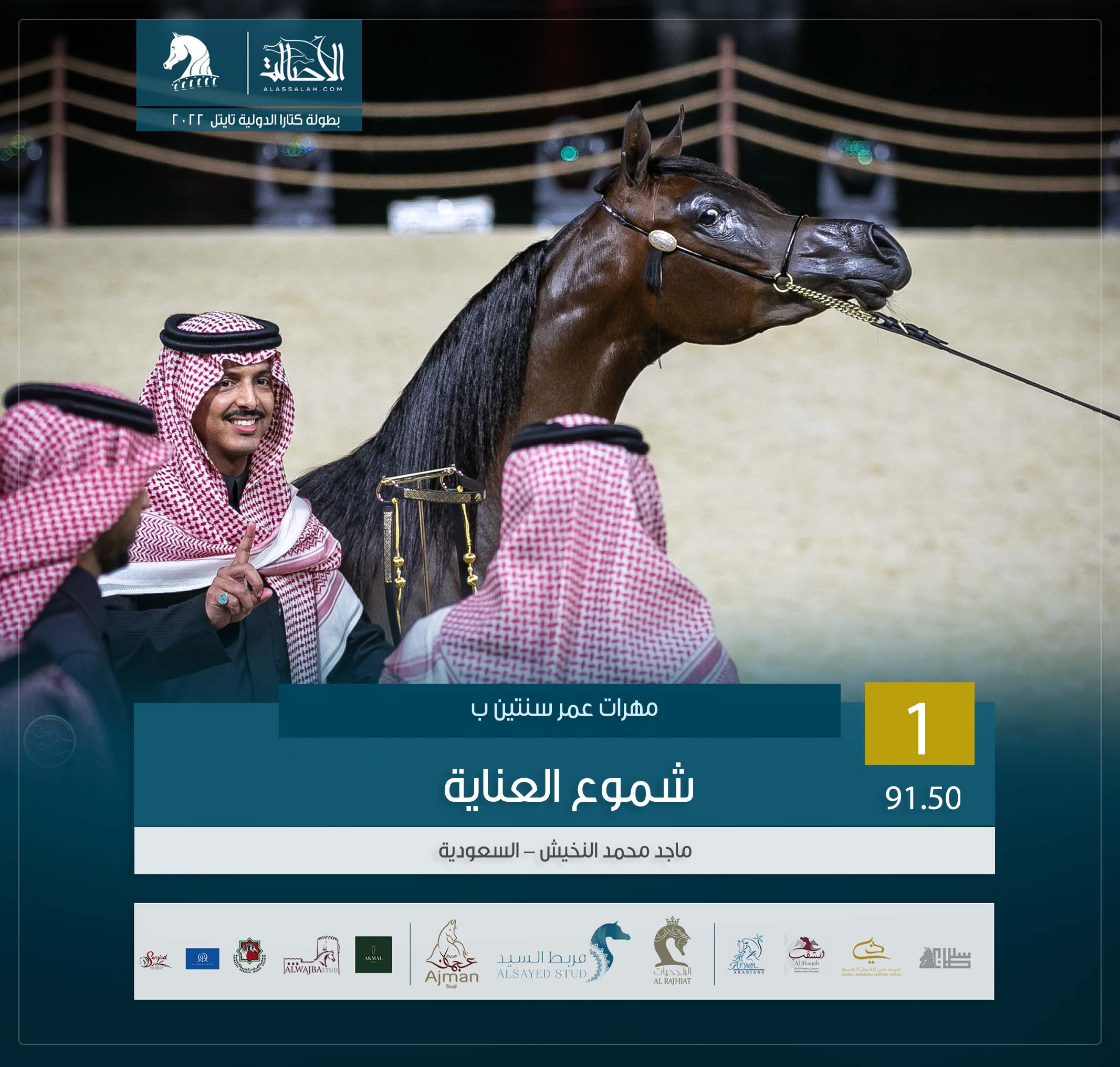 المركز الأول: شموع العناية (سلطان العناية x ملكة العناية) مربط النخيش – السعودية.