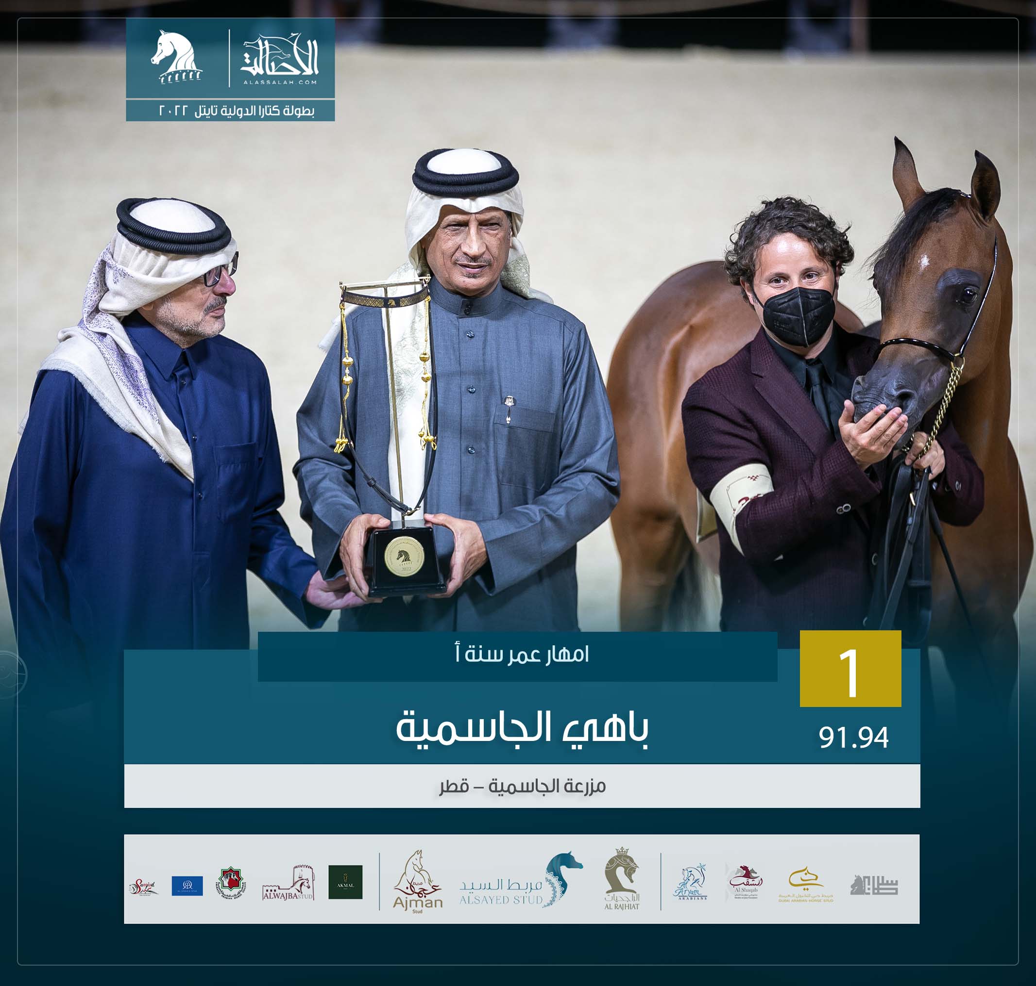 المركز الأول: باهي الجاسمية (سهم العرب x بلاد الفابية) مربط الجاسمية – قطر.