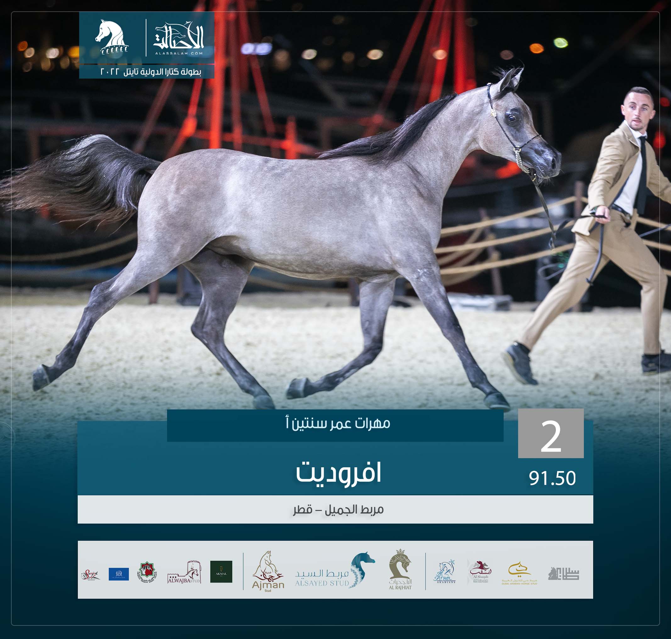 المركز الثاني: افروديت (دي ابن رشيم x أيه إي آي مايستار) مربط الجميل- قطر.