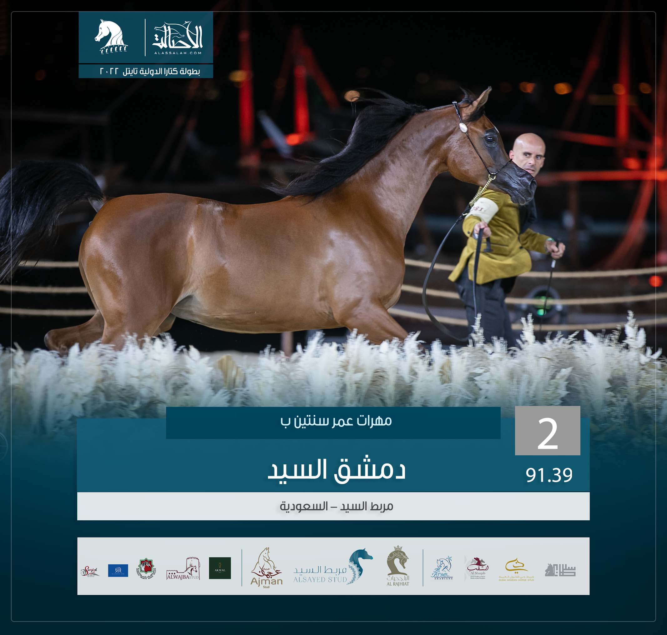 المركز الثاني: دمشق السيد (فاليدورو x ديلايت ديفة آر بي) مربط السيد – السعودية.