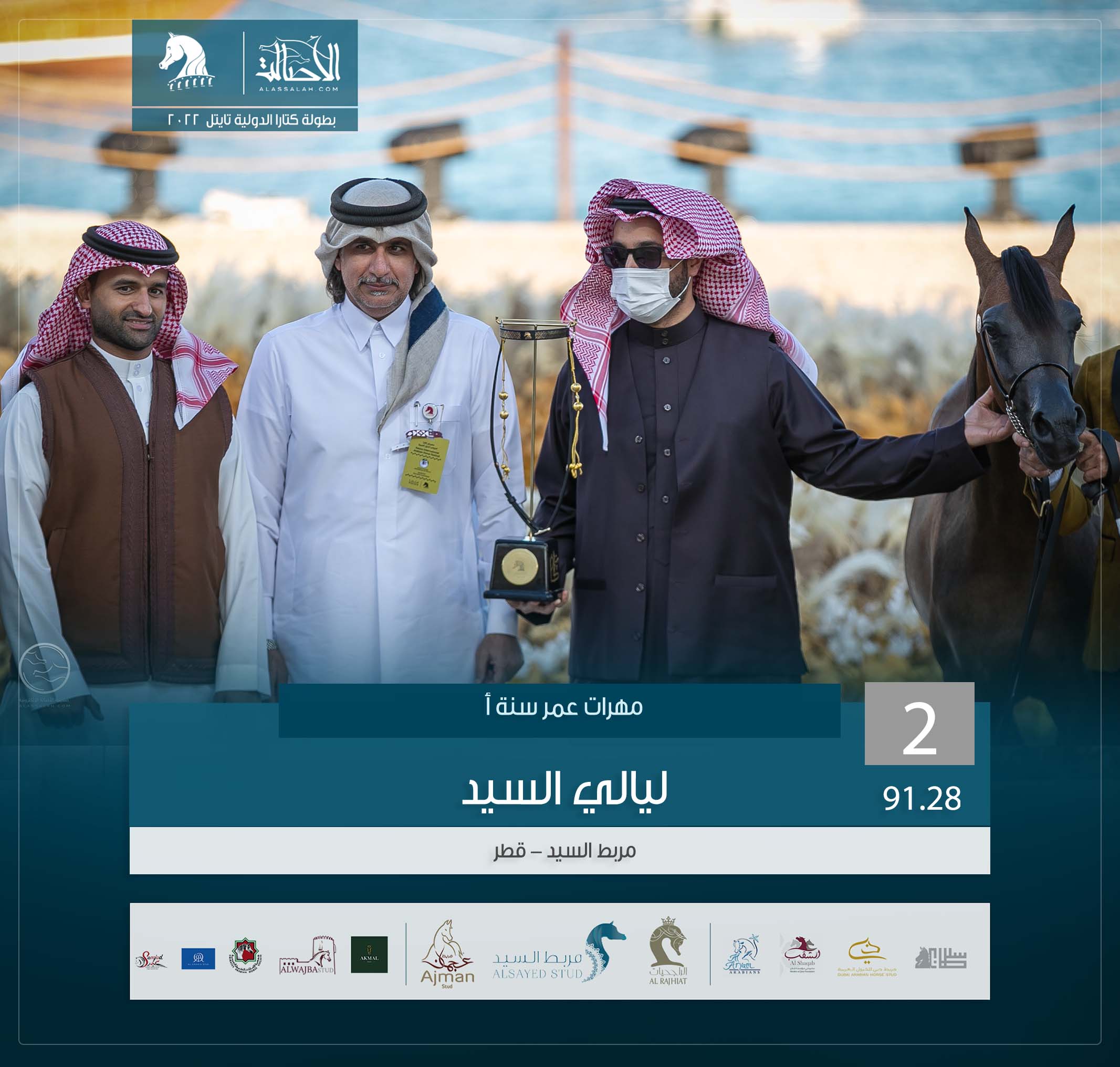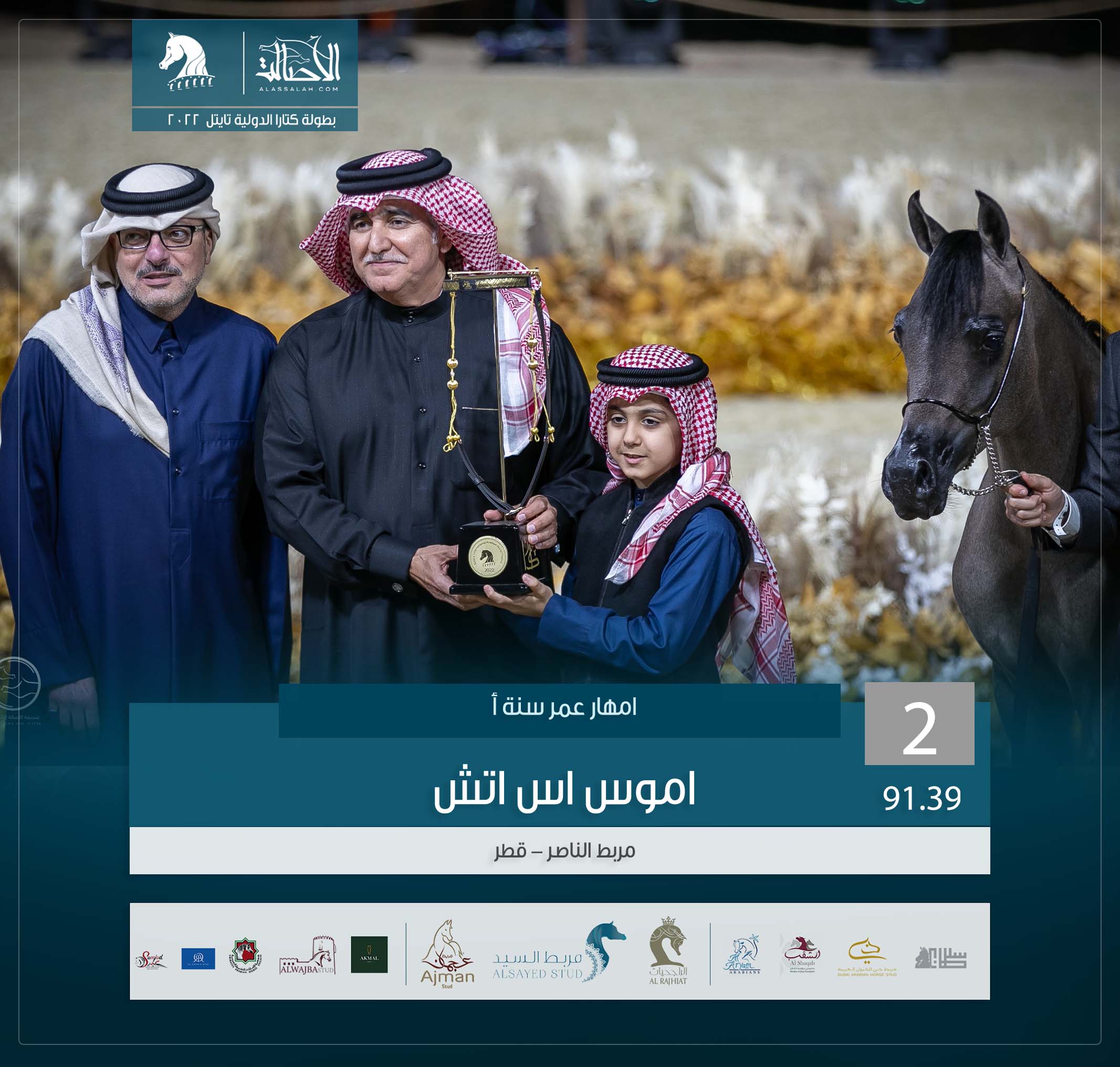 المركز الثاني: أموس اس اتش (إي كيه اس فراج x ساليتا كيه ايه) مربط الناصر- قطر.