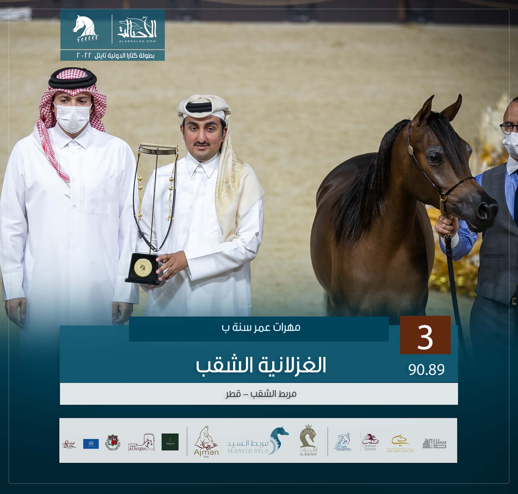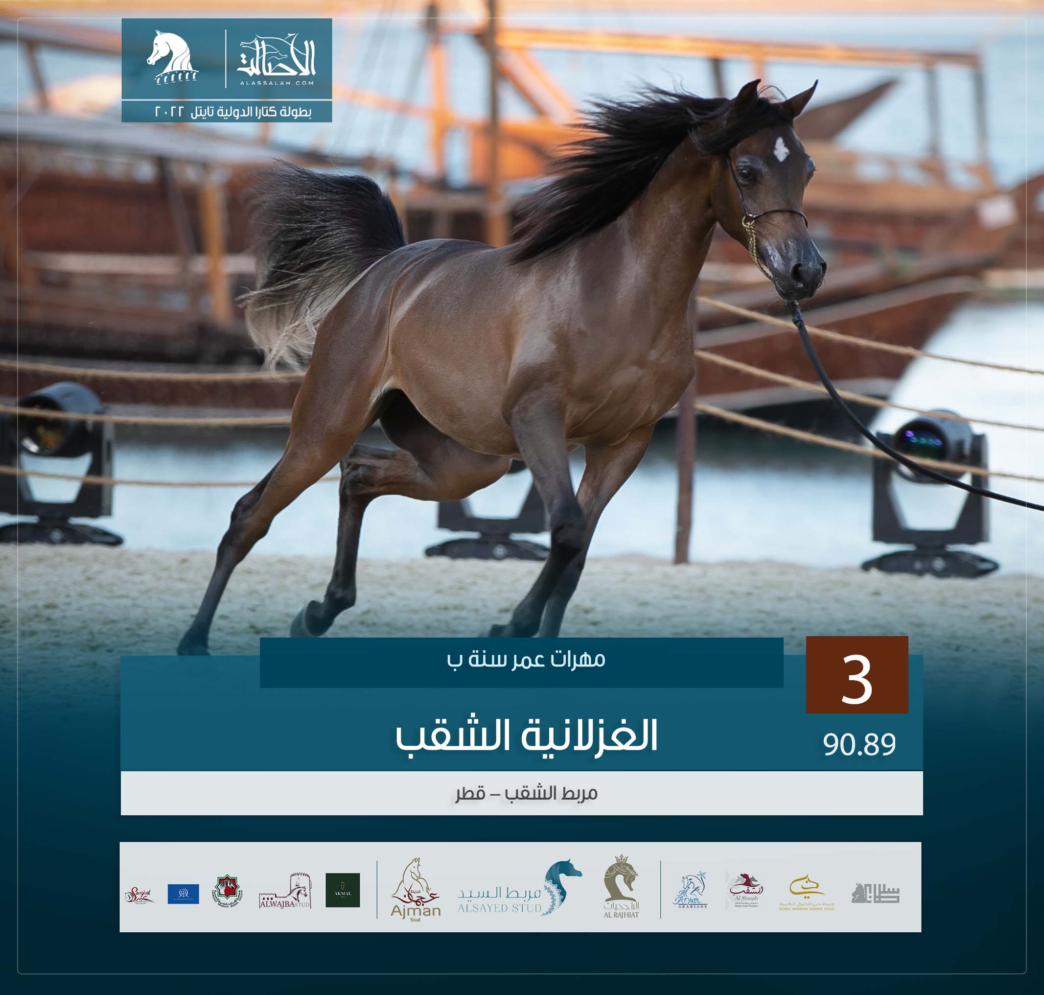 المركز الثالث: الغزلانية ايه ال (الايال ايه ايه x سلطانة الشقب) مربط الشقب – قطر.