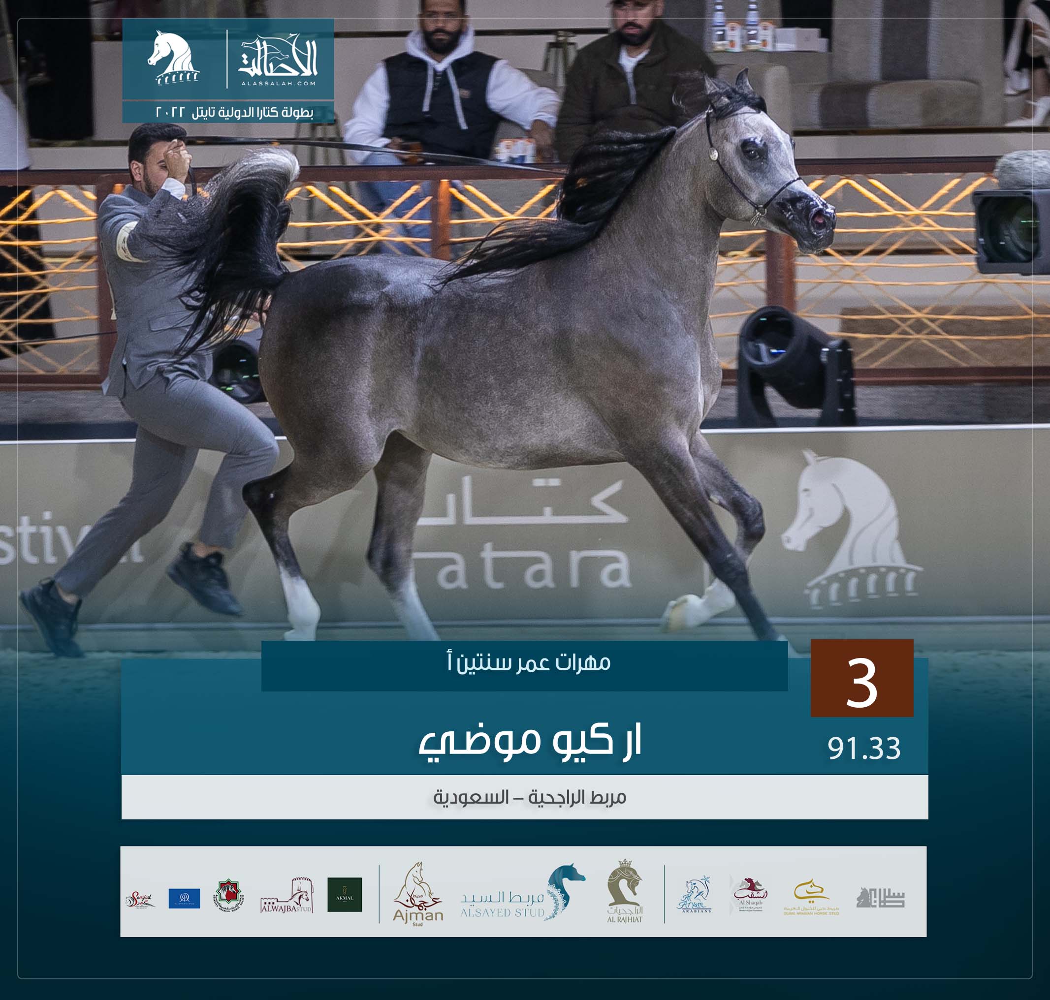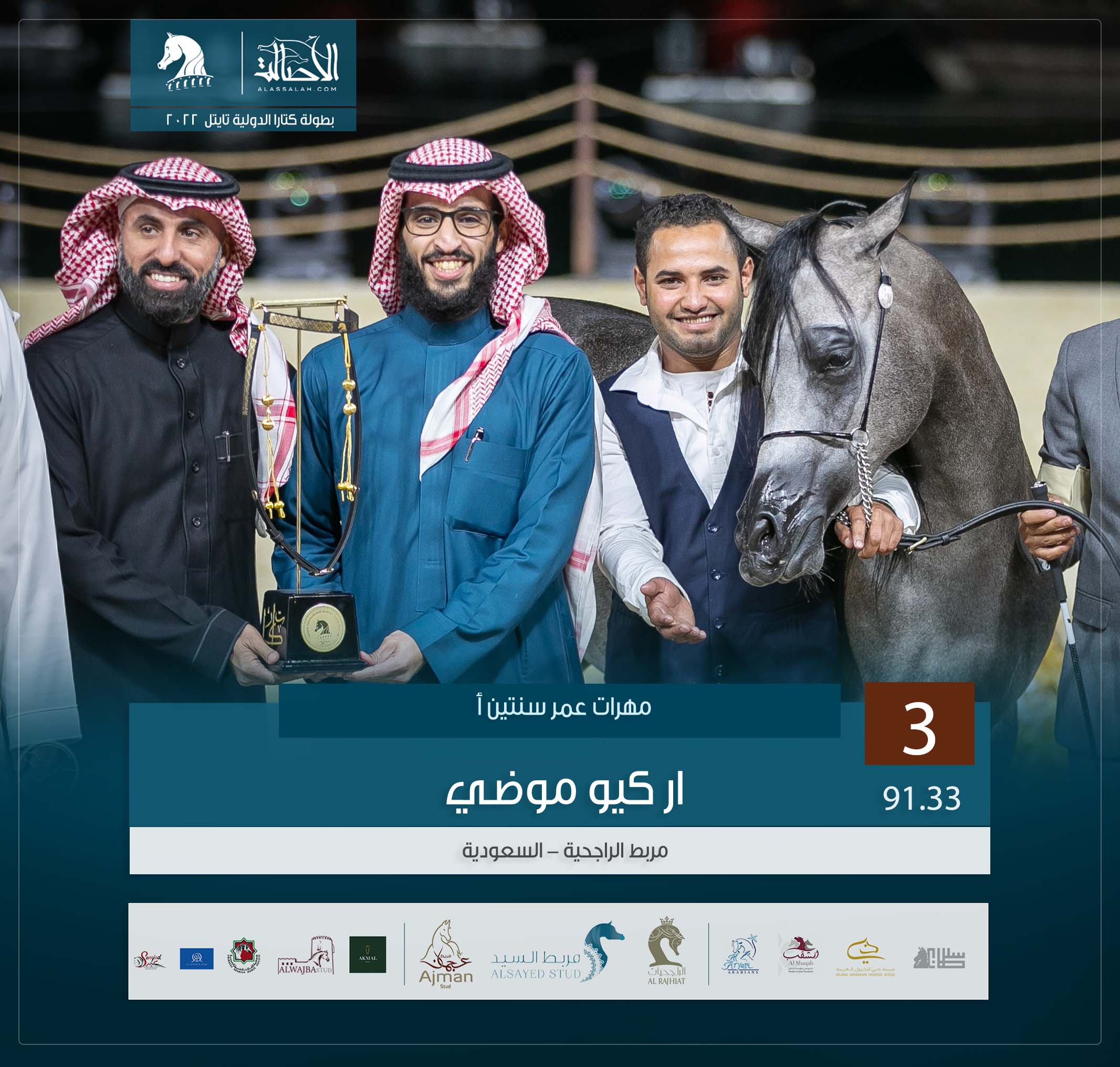 المركز الثالث: آر كيو موضي (الكساندر x اس كحيلة) مربط الراجحية – السعودية.