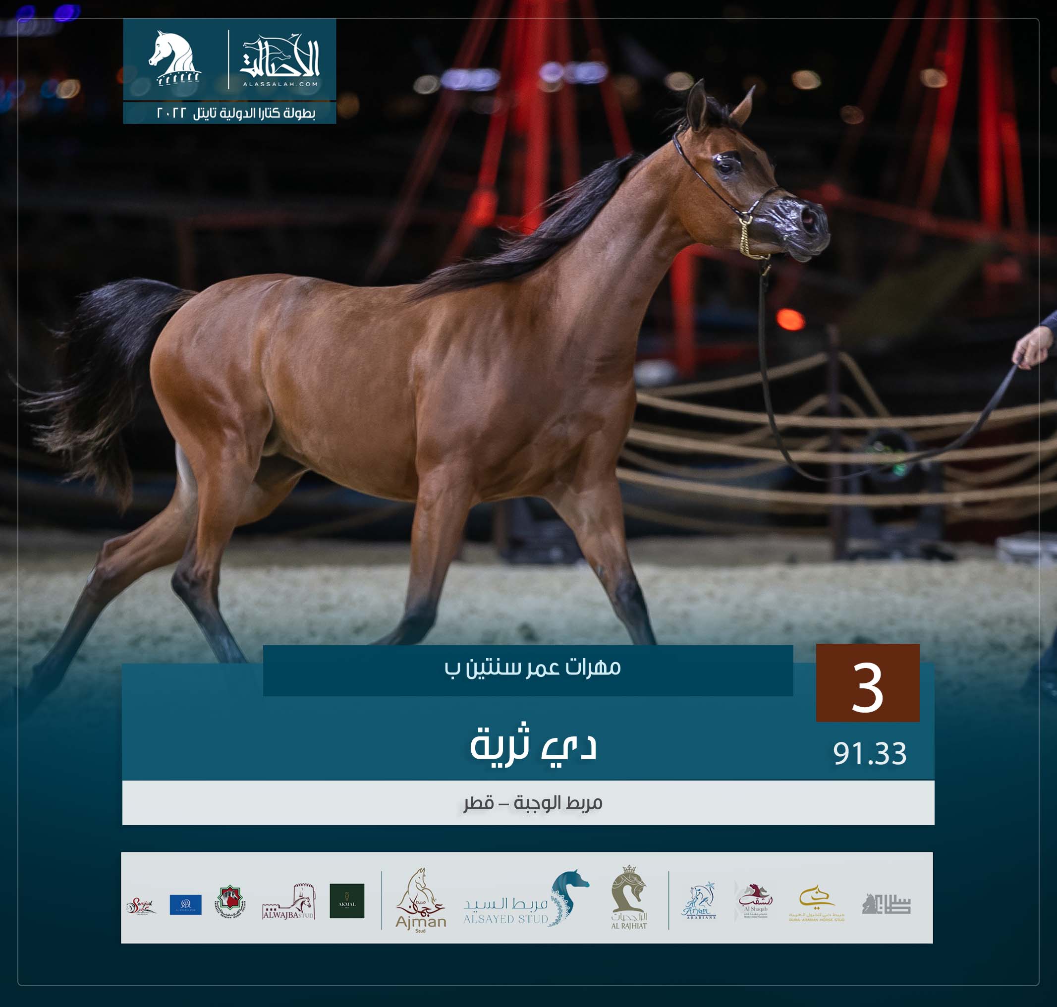 المركز الثالث: دي ثرية (اف ايه الرشيم x دي أزاليا) مربط الوجبة – قطر.