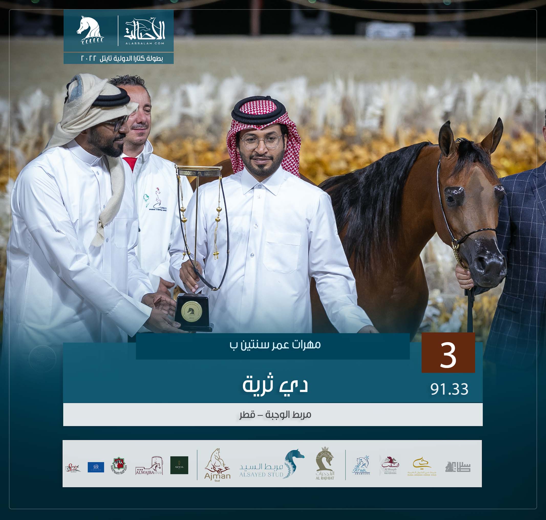 المركز الأول: دي طموح (دي سراج x آر ايه اتش روزاليا) مربط الجاسمية – قطر.