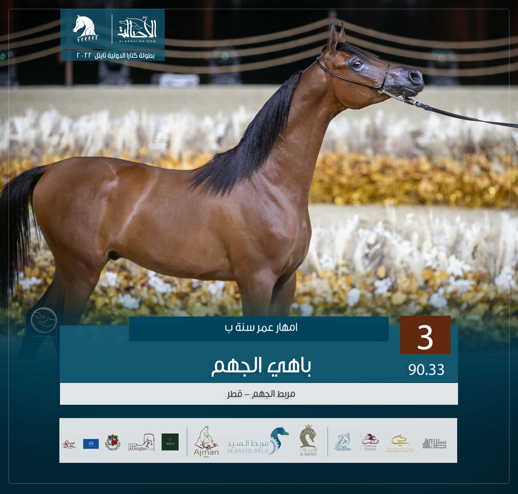 المركز الثالث: باهي الجهام (بديع الناصر x بريه إي ايه) مربط الجهام – قطر.