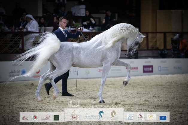 المركز الأول: إي كي اليهاندرو (مروان الشقب x او اف دبليو بسالهوت) مزرعة الجاسمية- قطر.
