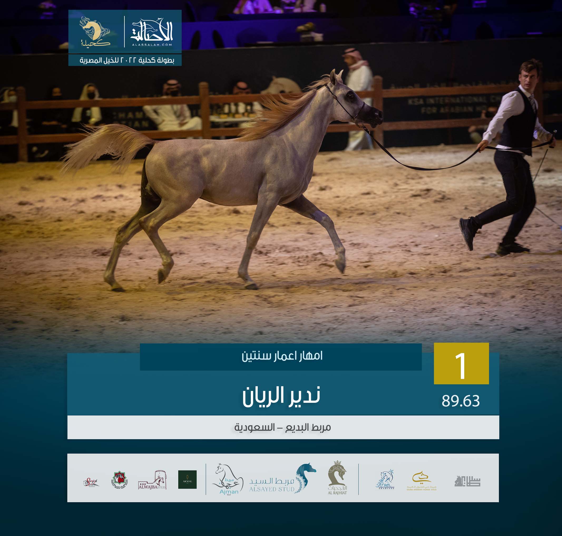 المركز الأول: ندير الريان (عقاب الريان X مهيرجا الريان ) مربط البديع – السعودية.