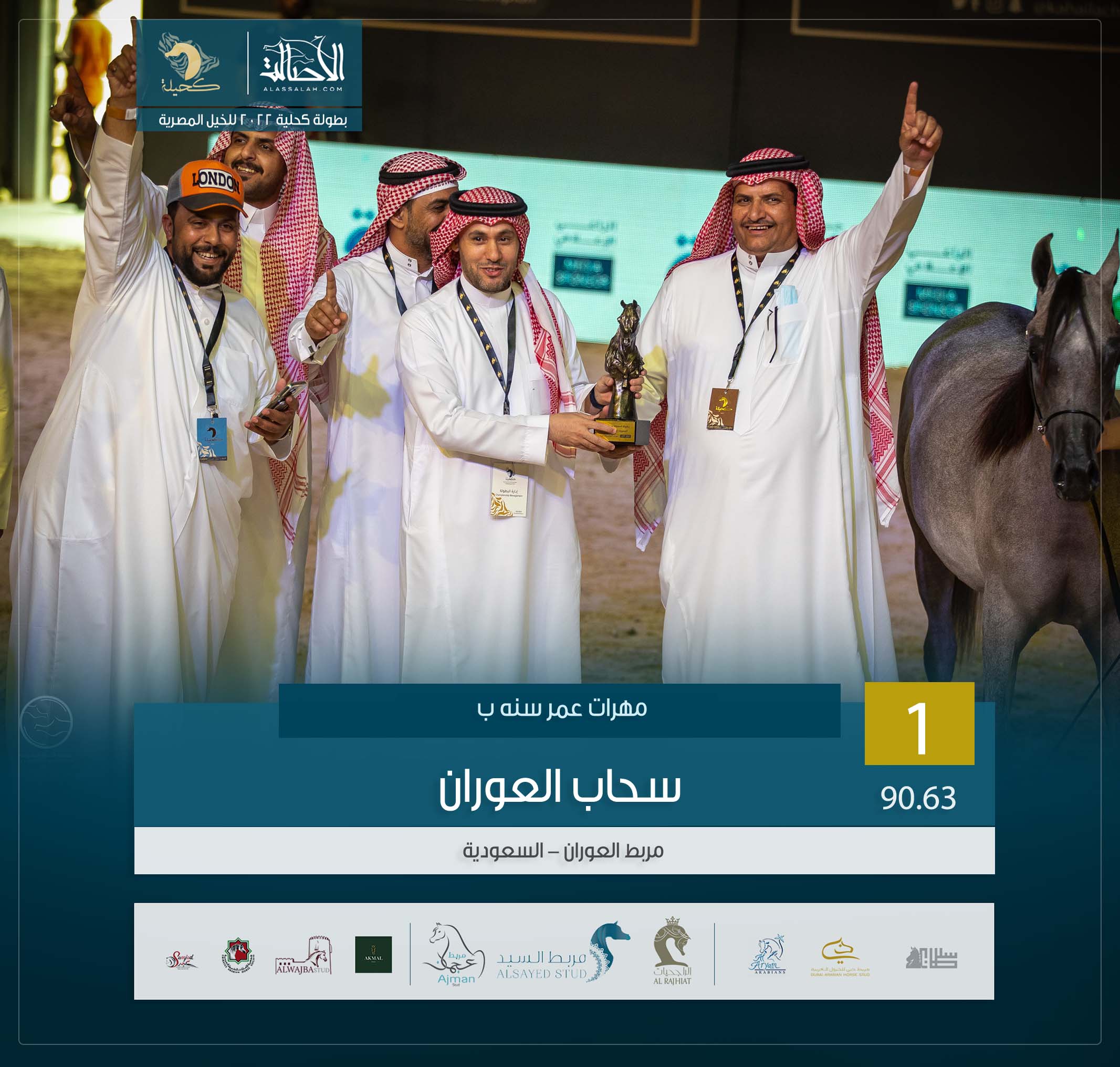 المركز الأول: سحاب العوران (جميل الراشديةx يسرية السلمانية) مربط العوران- السعودية.
