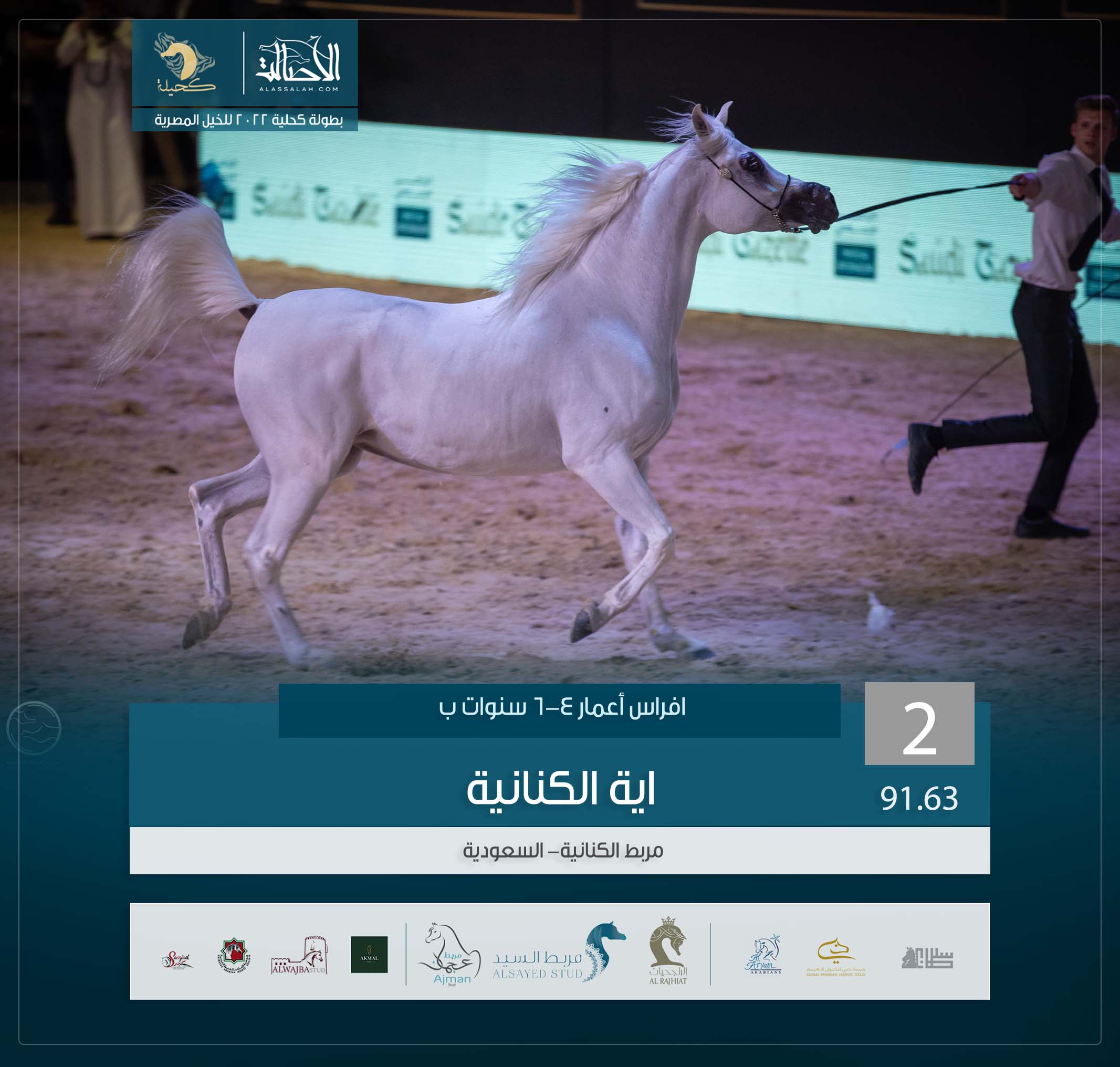 المركز الثاني: آية كنانية (عفيف الشقب x كوثر كنانة) مربط كنانة – السعودية.