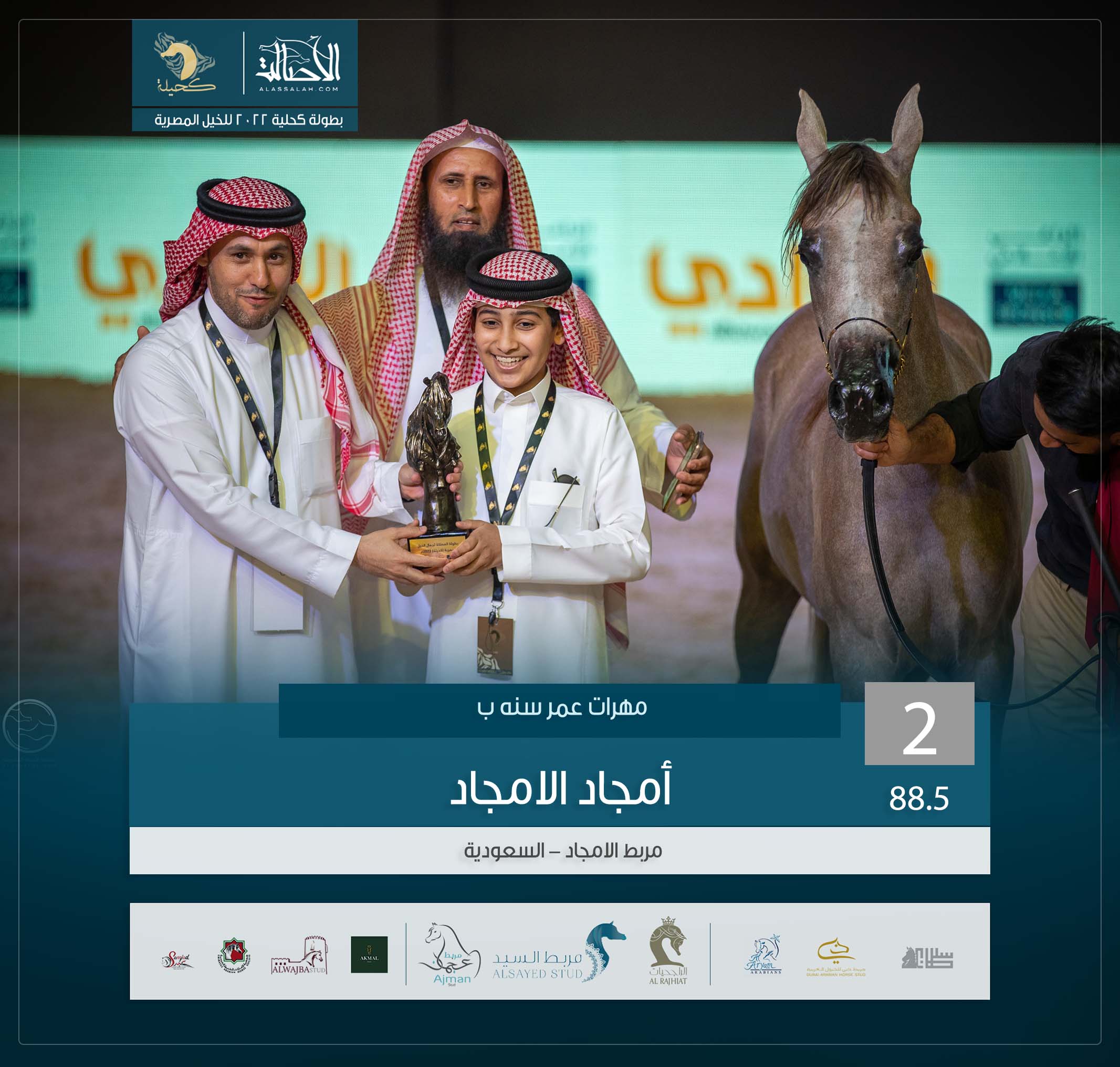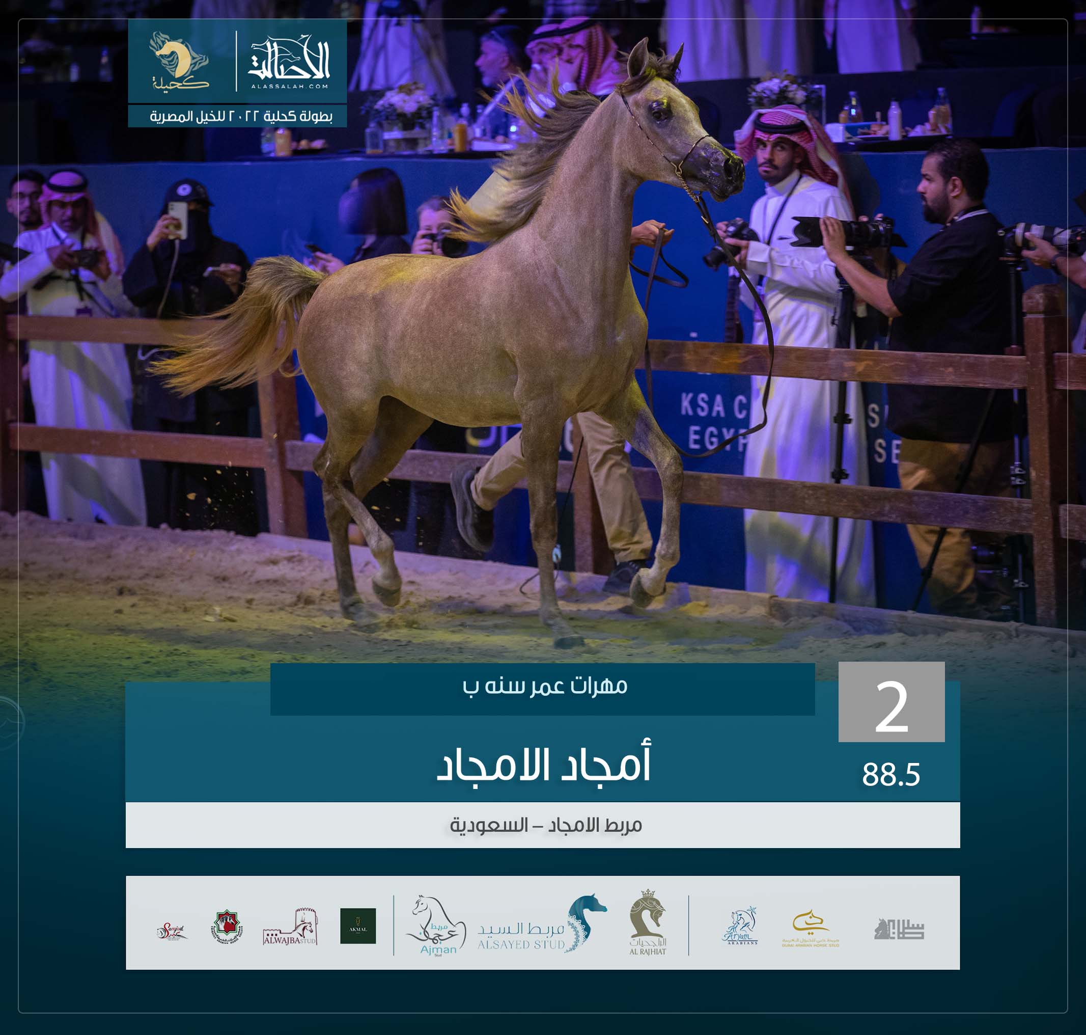 المركز الثاني: أمجاد الأمجاد (دي لباد x قيسونة مبروكة) مربط الأمجاد – السعودية.