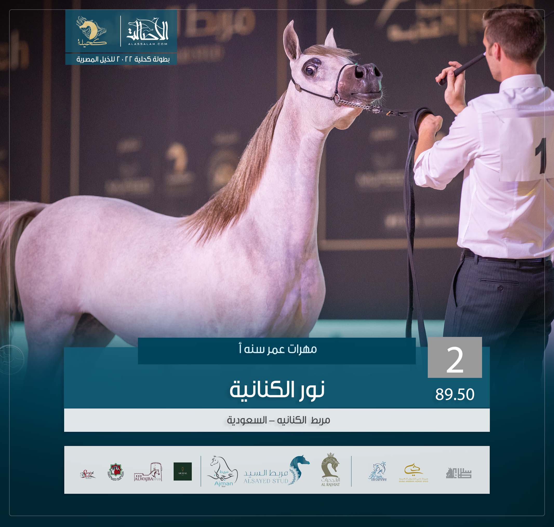 المركز الثاني: نور الكنانية (هلايل الوعب x ديشا كاتيه) مربط الكنانية- السعودية.