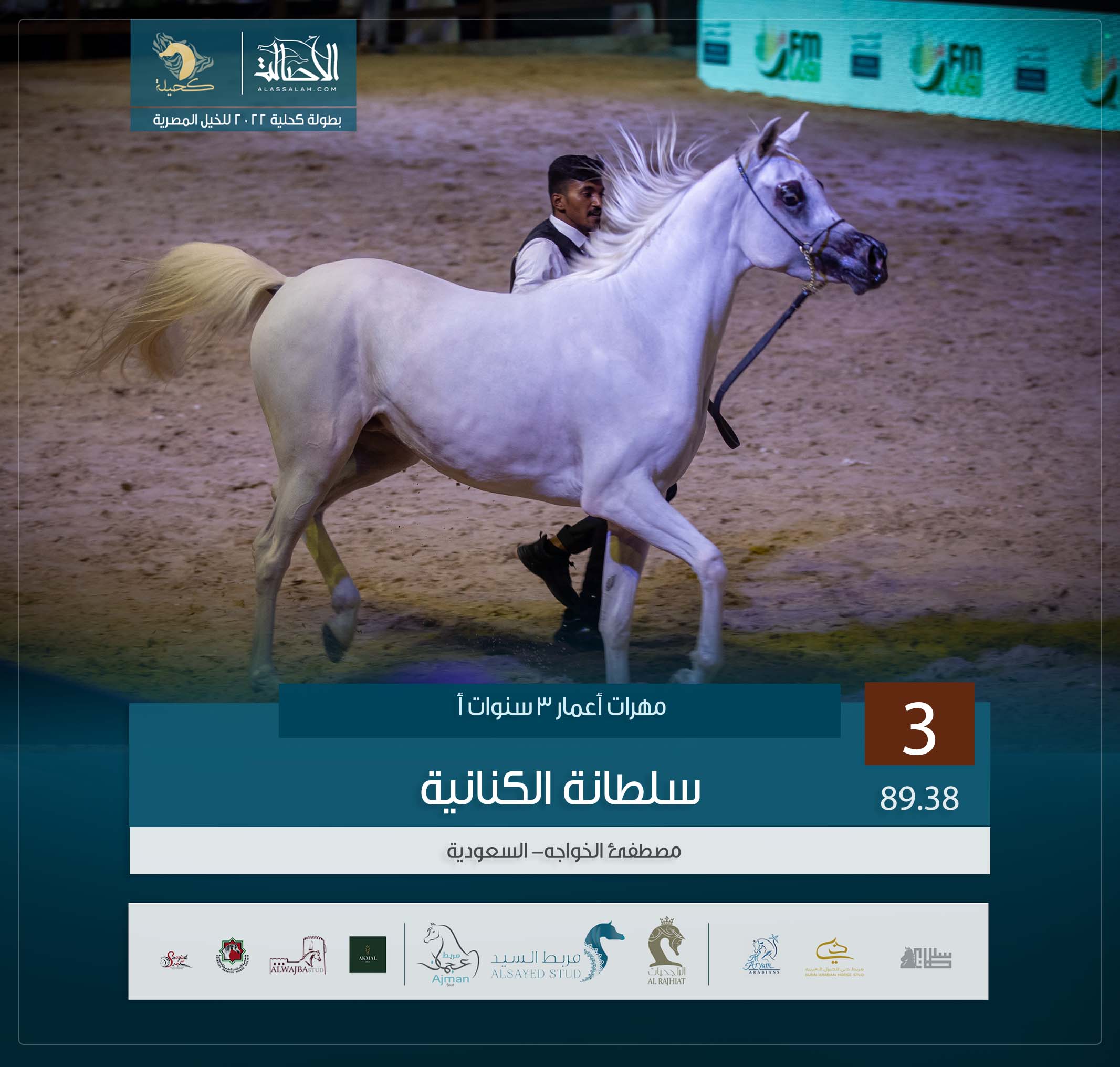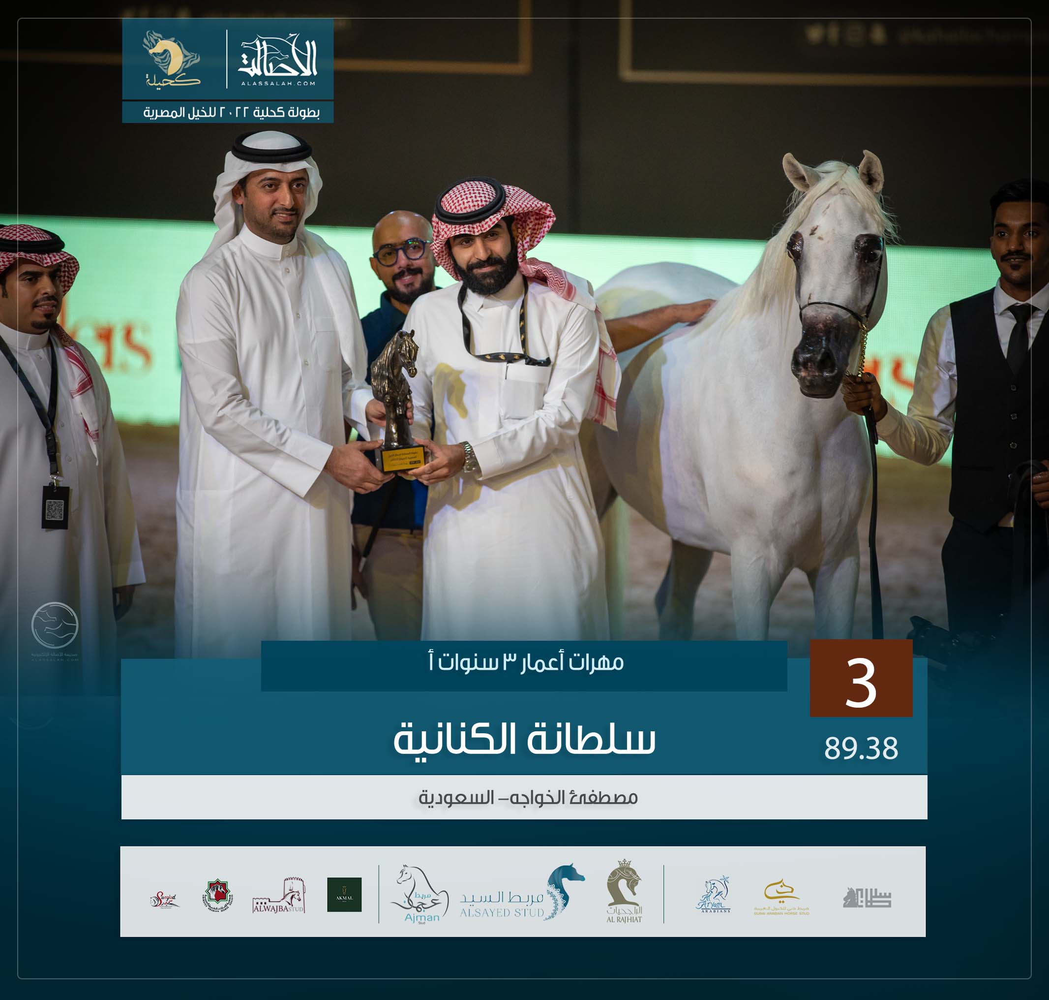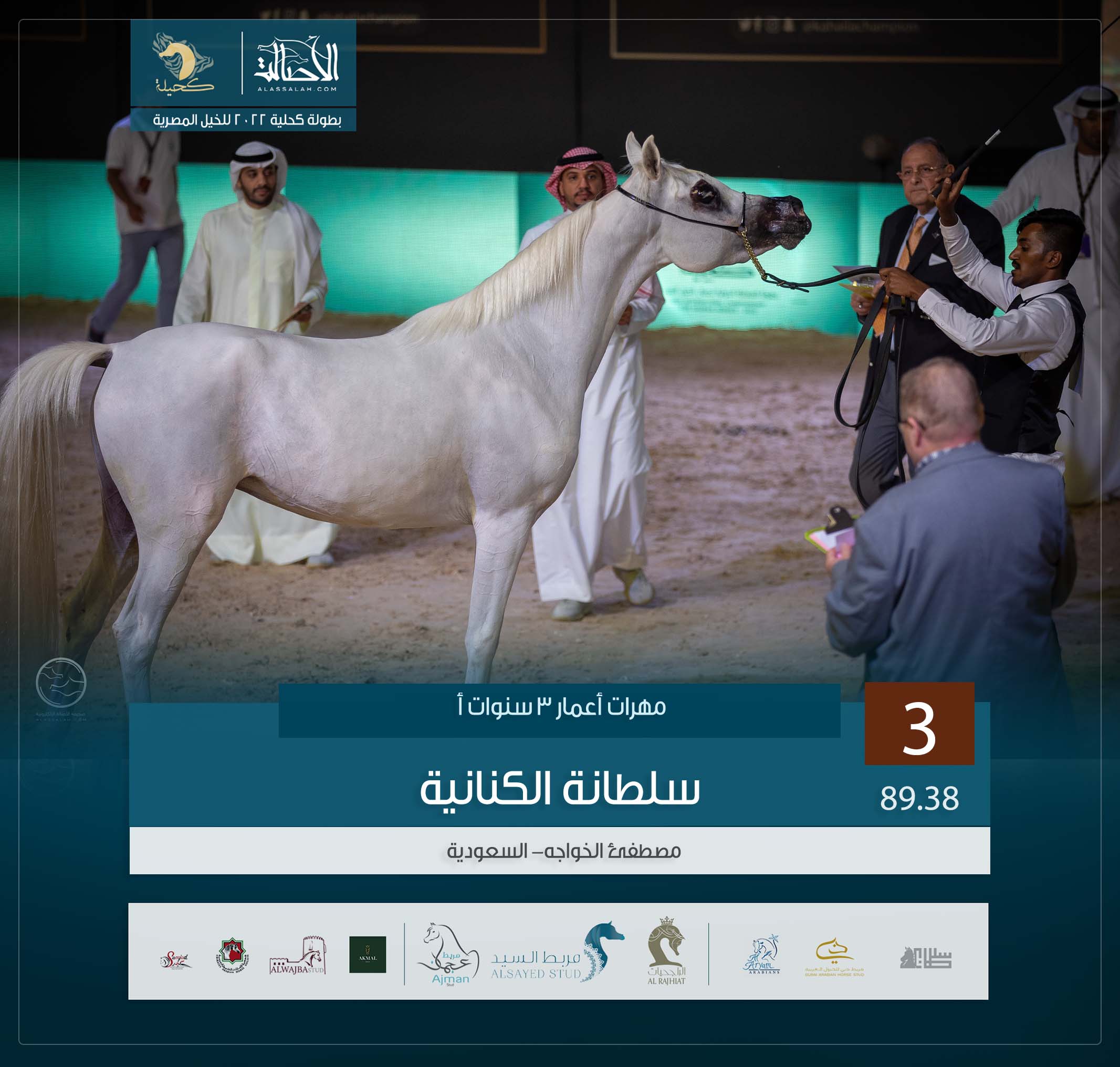 المركز الثالث: سلطانة الكنانية (هلايل الوعب x ديشا كاتيه) مربط مصطفى بن أمين الخواجه- السعودية.