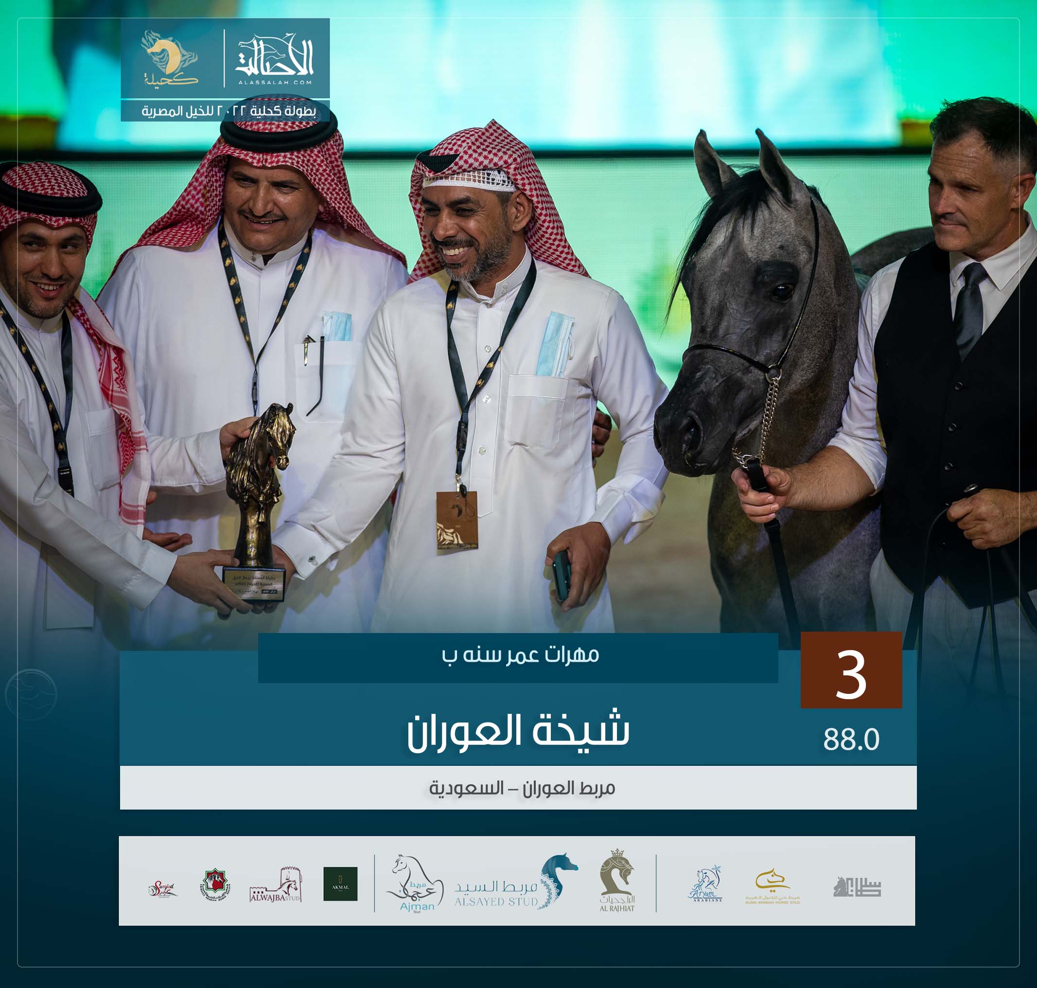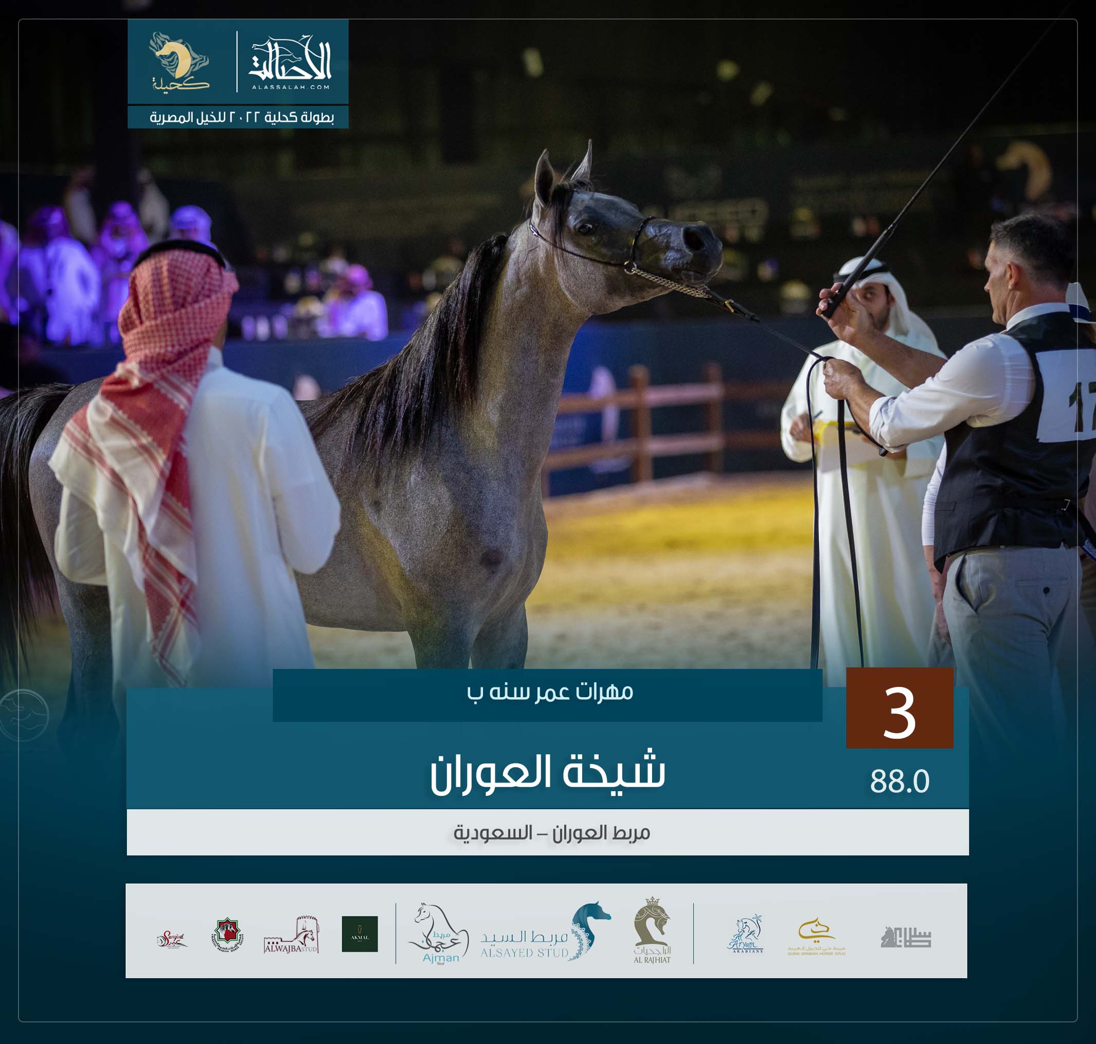 المركز الثالث: شيخة العوران (جميل الراشدية x ديشا كاسميلا) مربط العوران – السعودية.