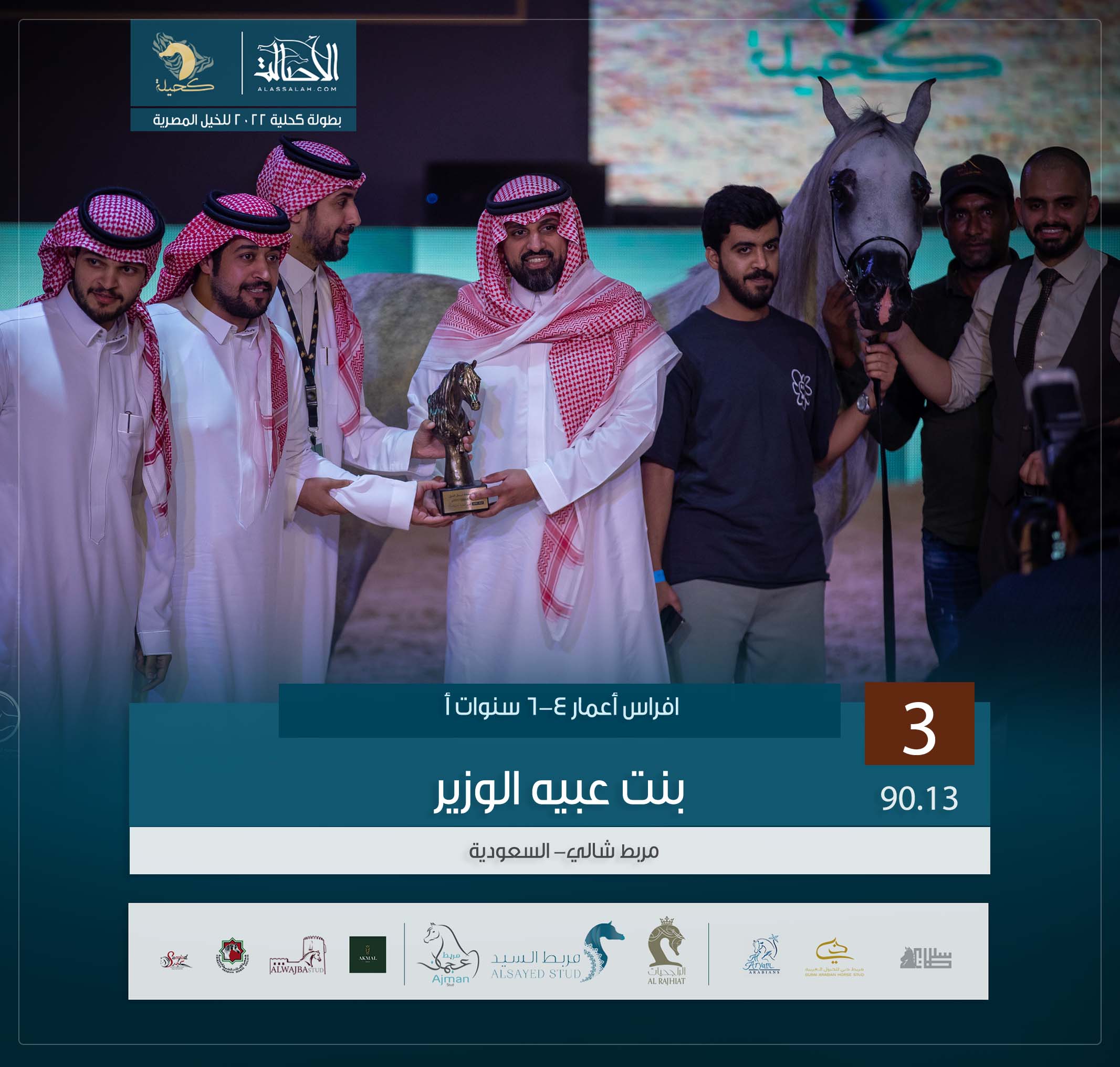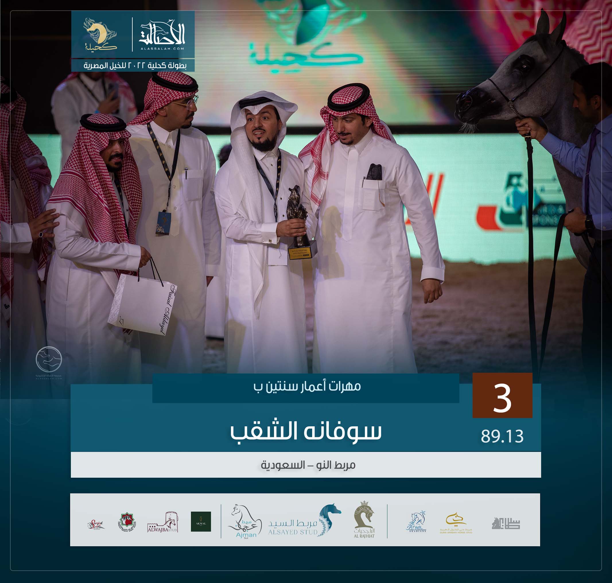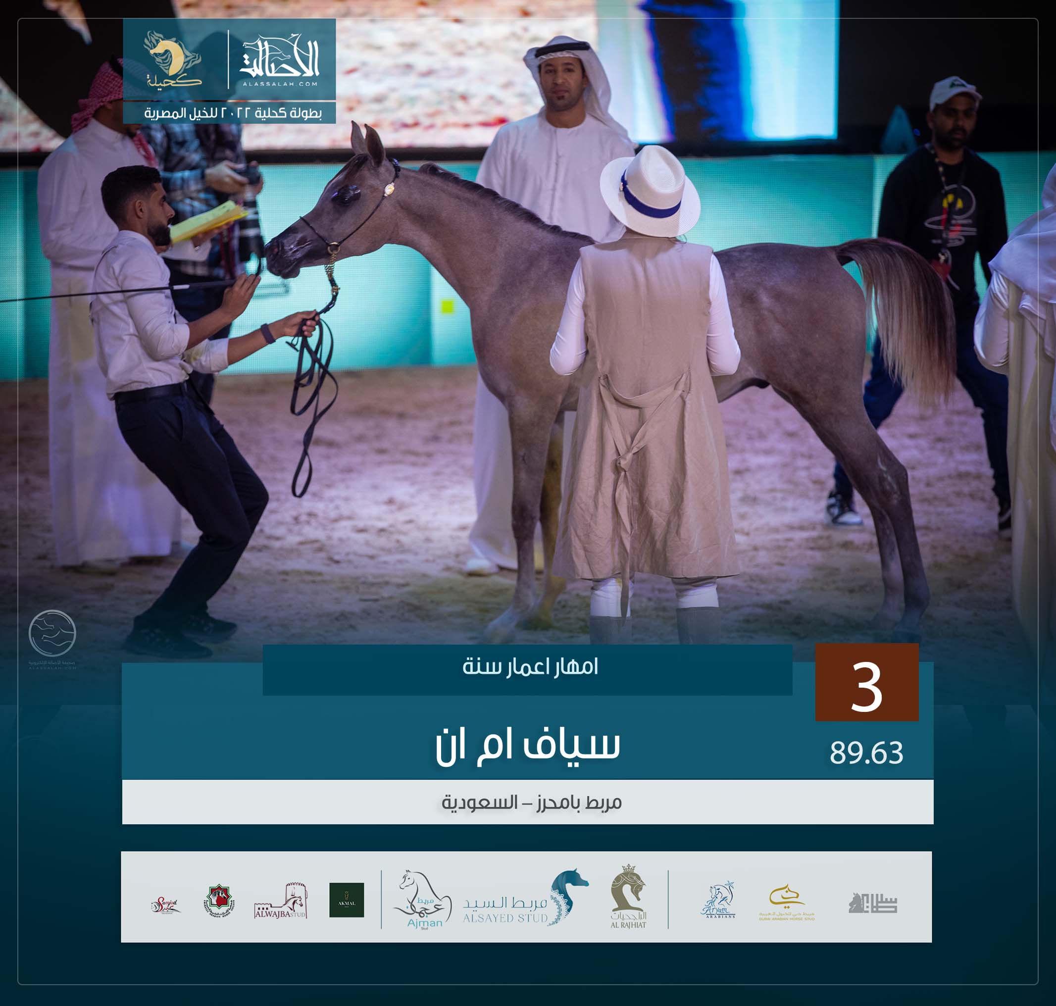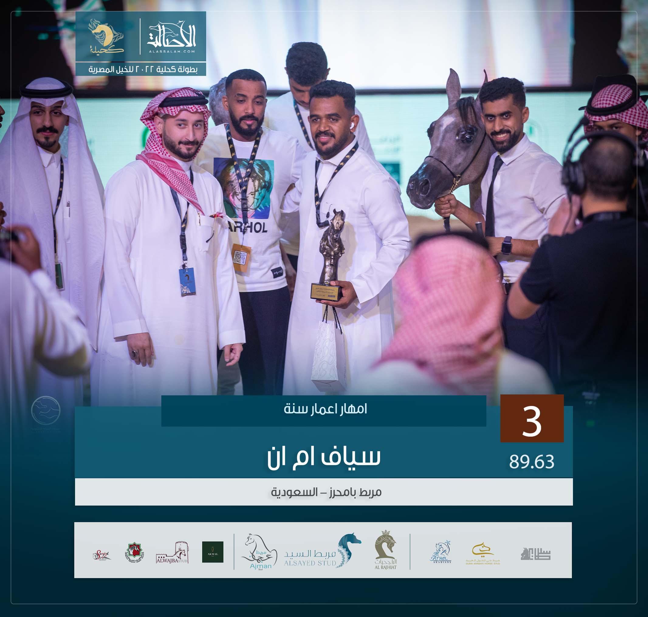 المركز الثالث: سياف ام ان (فخر جهينة X رحاب العوالي) إسطبل بامحرز – السعودية.