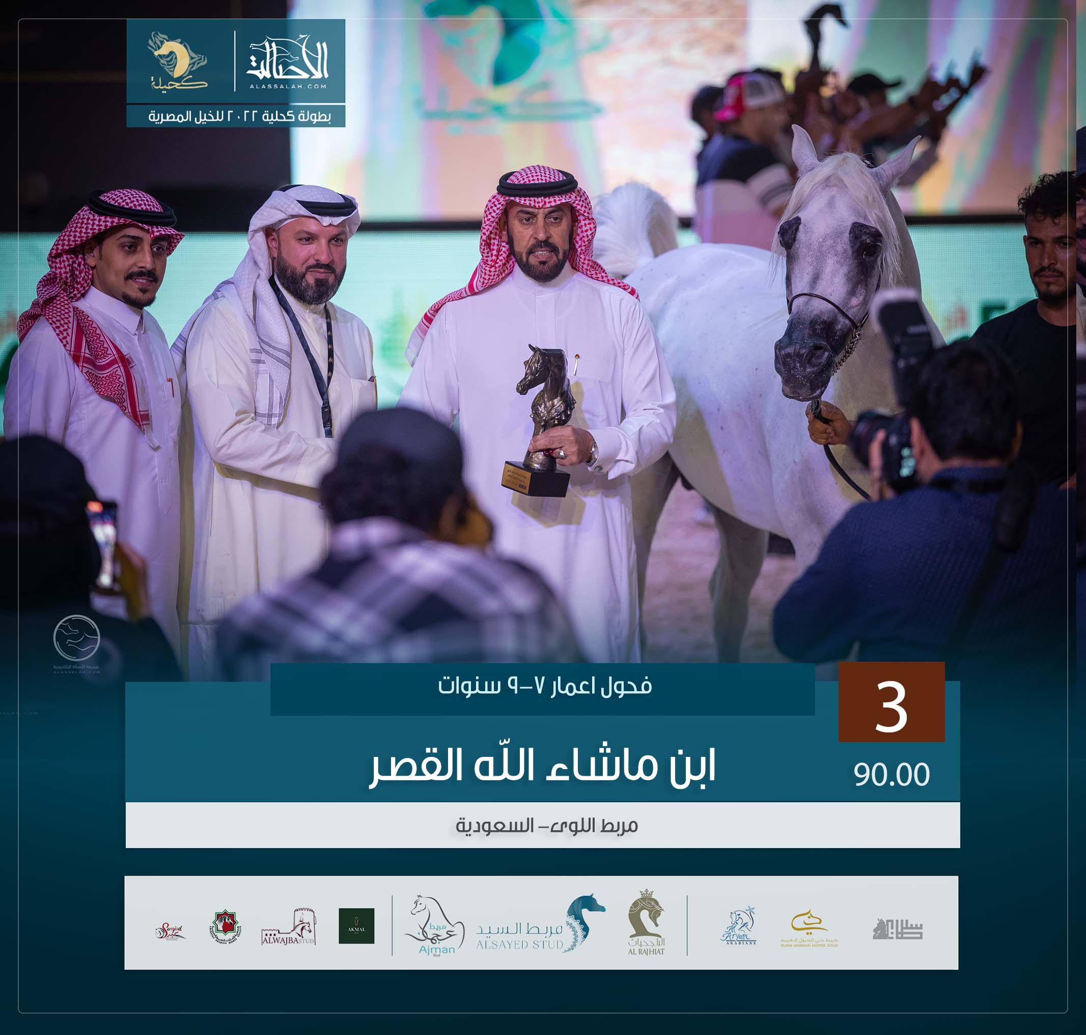 المركز الثالث: باسل الزبير (عجاب الزمان X تميمة الزبير) شركة مربط زان- السعودية.