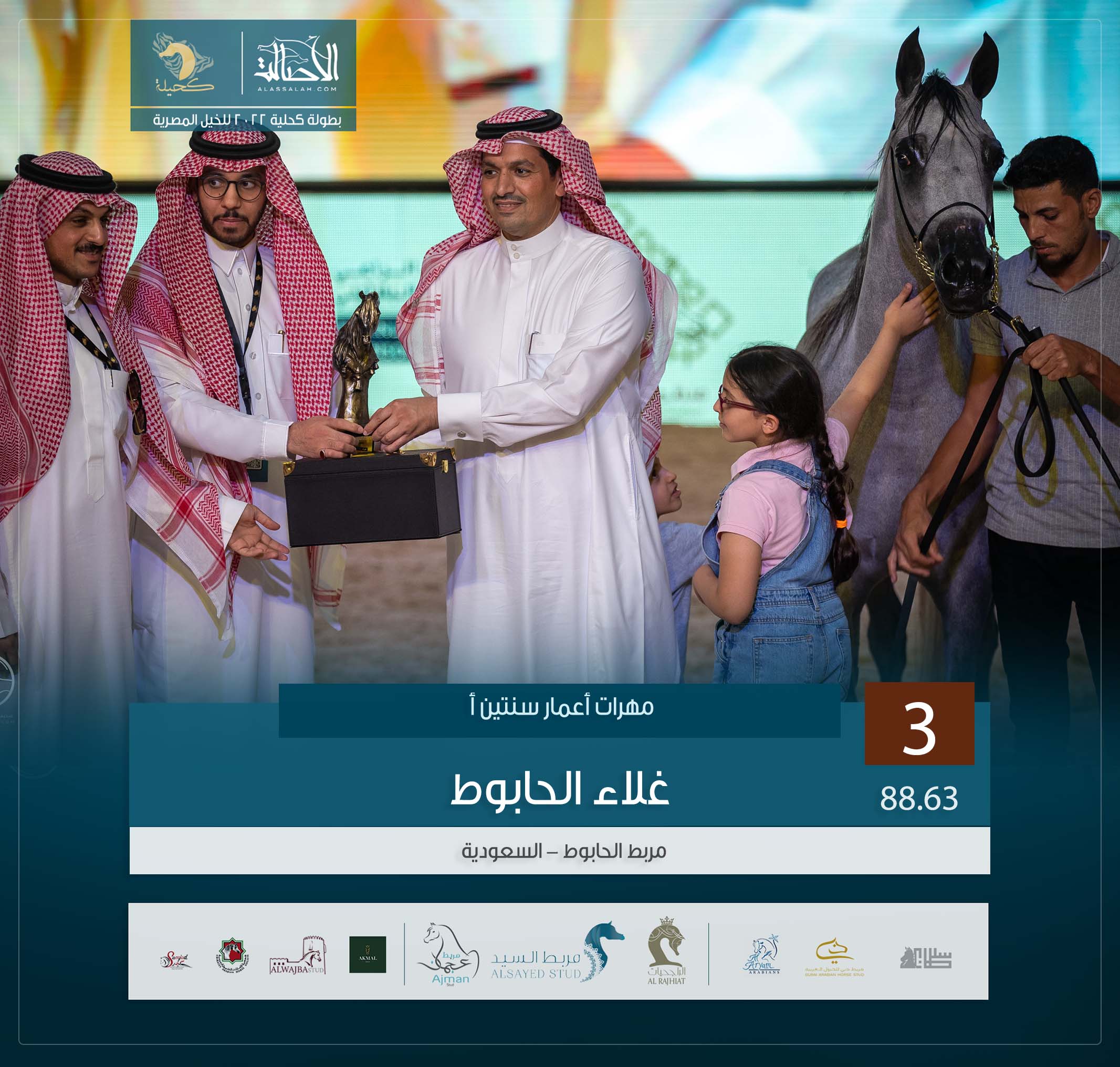 المركز الثالث: غلاء الحابوط ( جميل الراشدية x نورية) مربط الحابوط – السعودية.