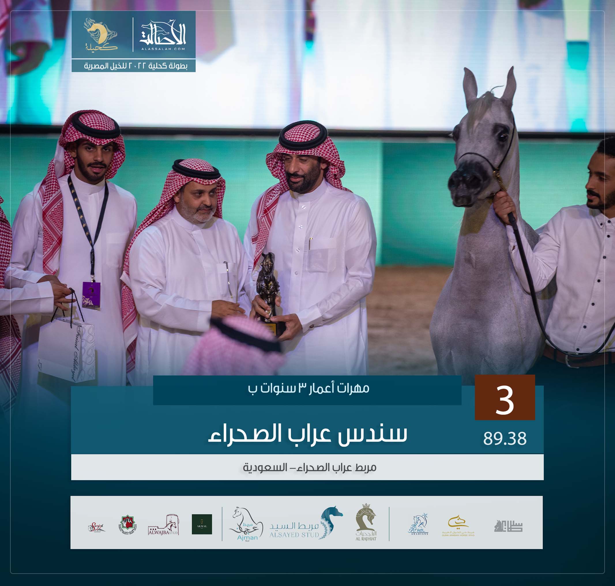 المركز الثالث: سندس عراب الصحراء (أحمل فريد x بيادر عراب الصحراء) مربط سعيد بن صالح بوبشيت – السعودية.