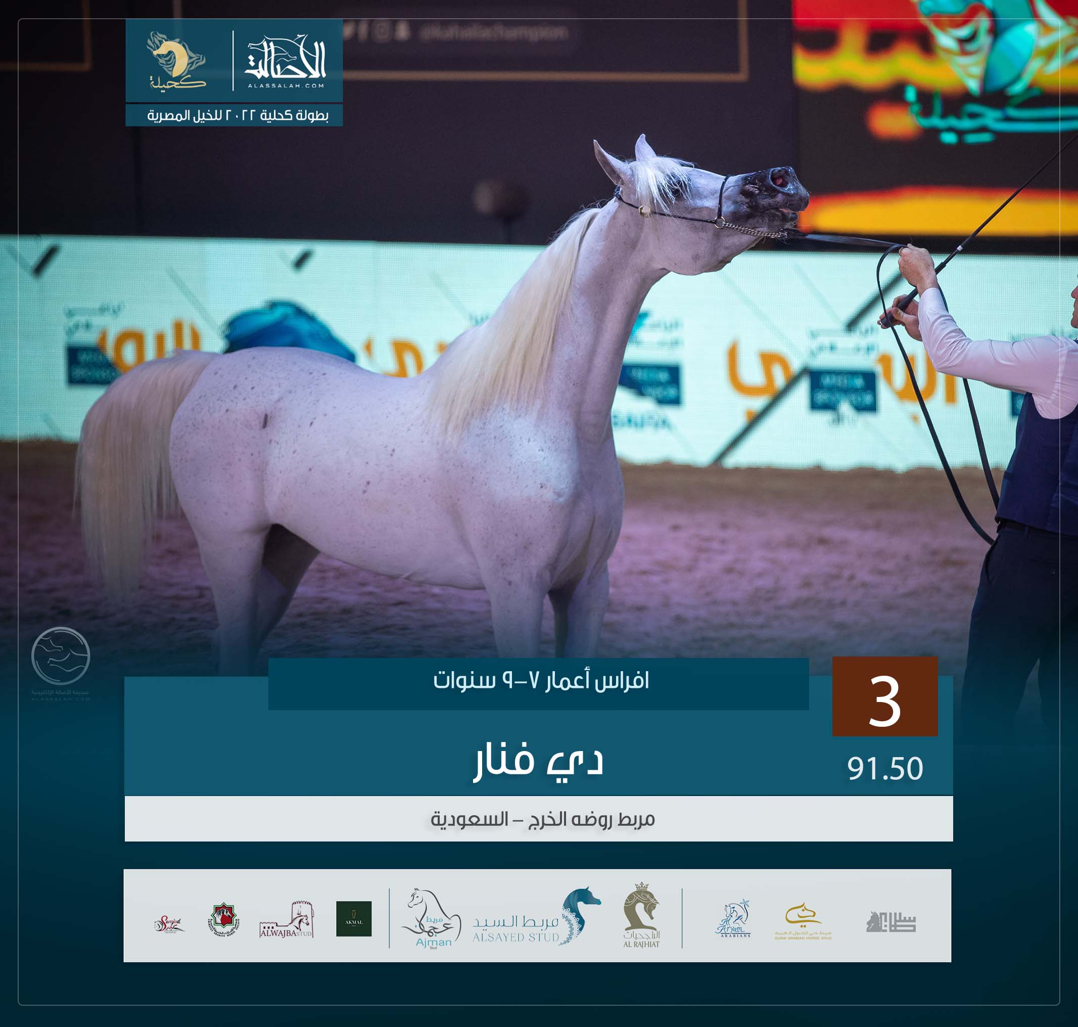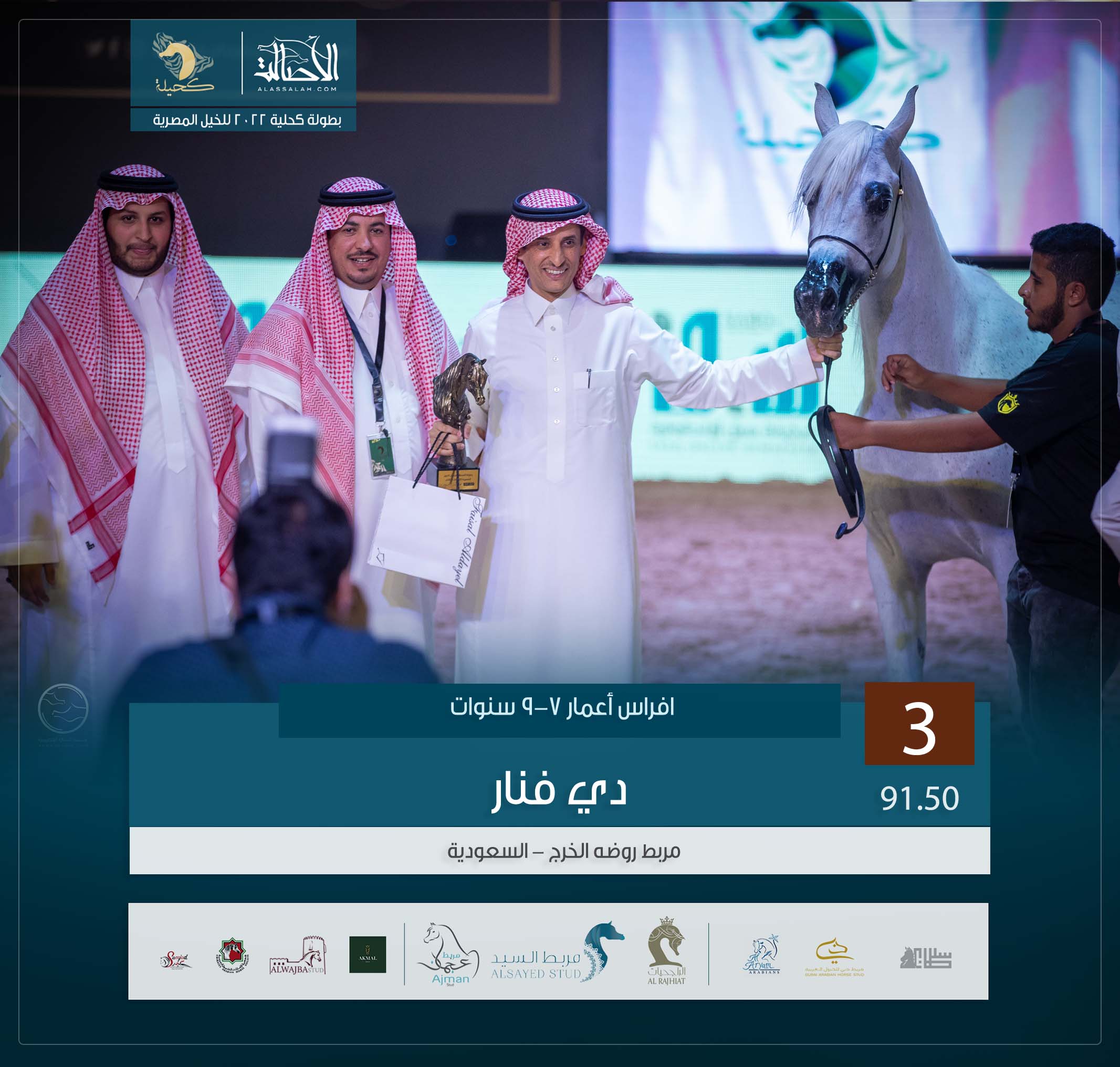 المركز الثالث: دي فنار (فراسير ماشار x دي اف فايقس فريدة) مربط سلطان الحقباني/روضة الخرج- السعودية.