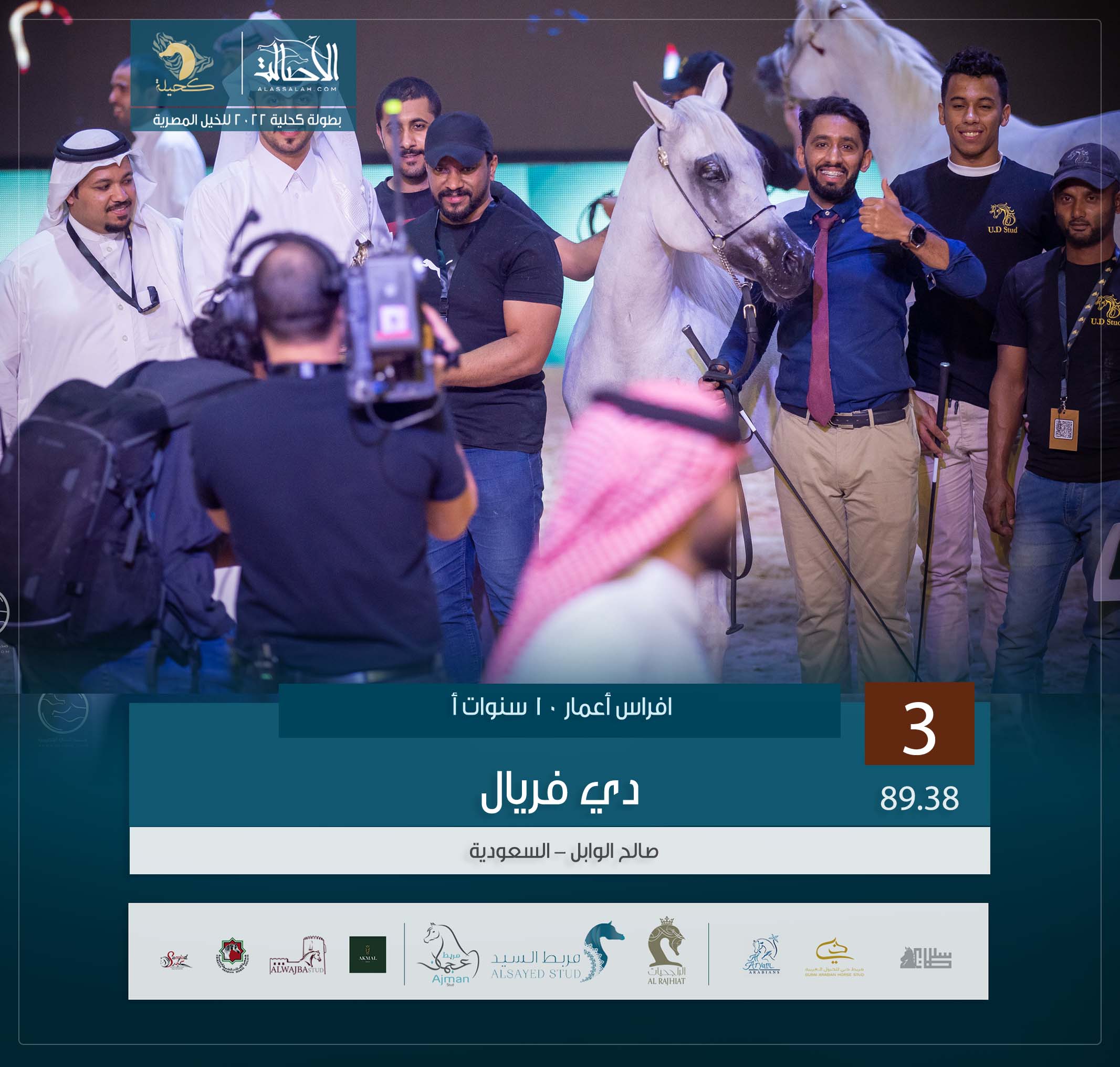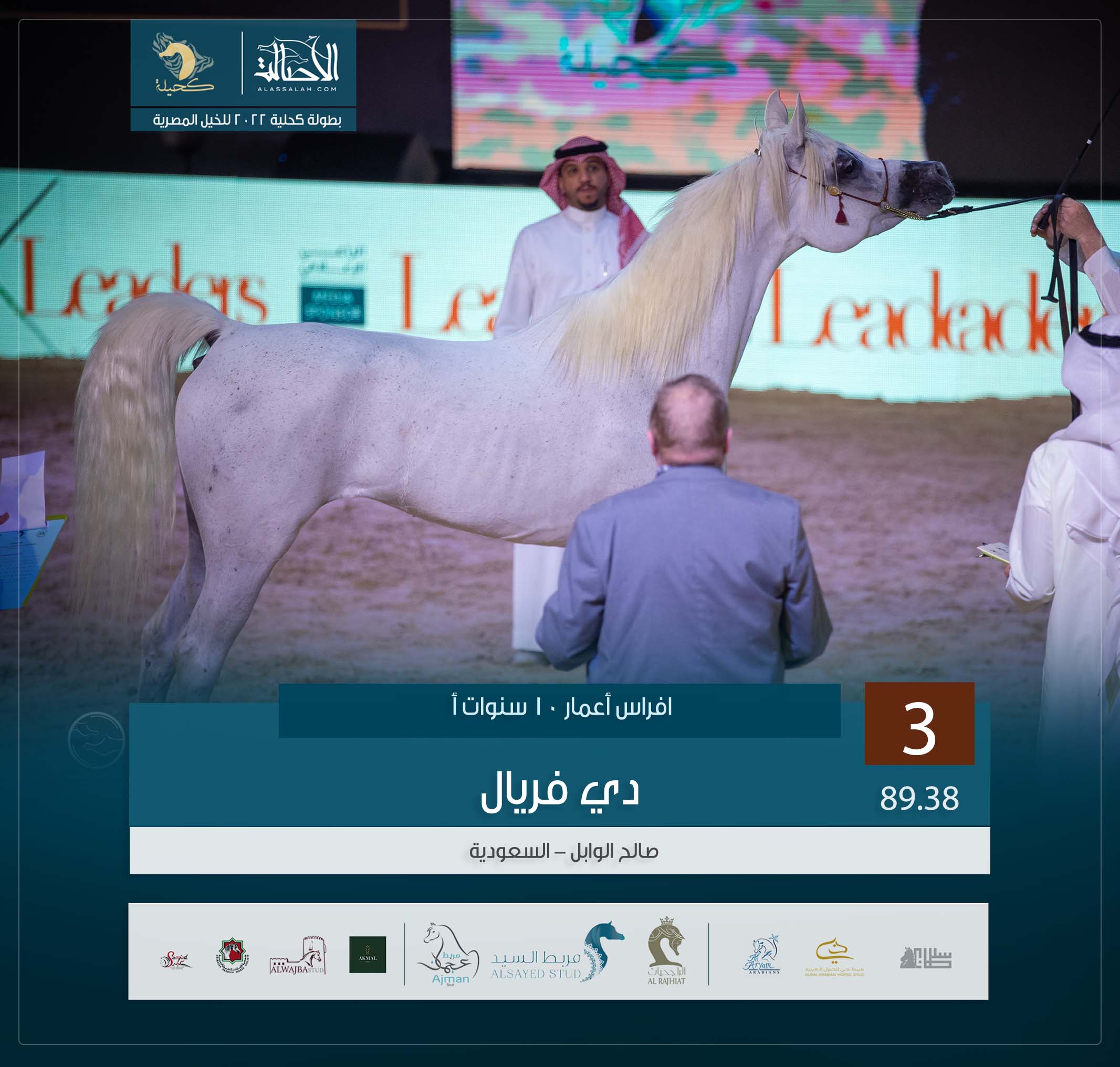المركز الثالث: دي فريال (فراسيرا مشار X دي اف فايقس فريدة) مربط صالح الوابل – السعودية.