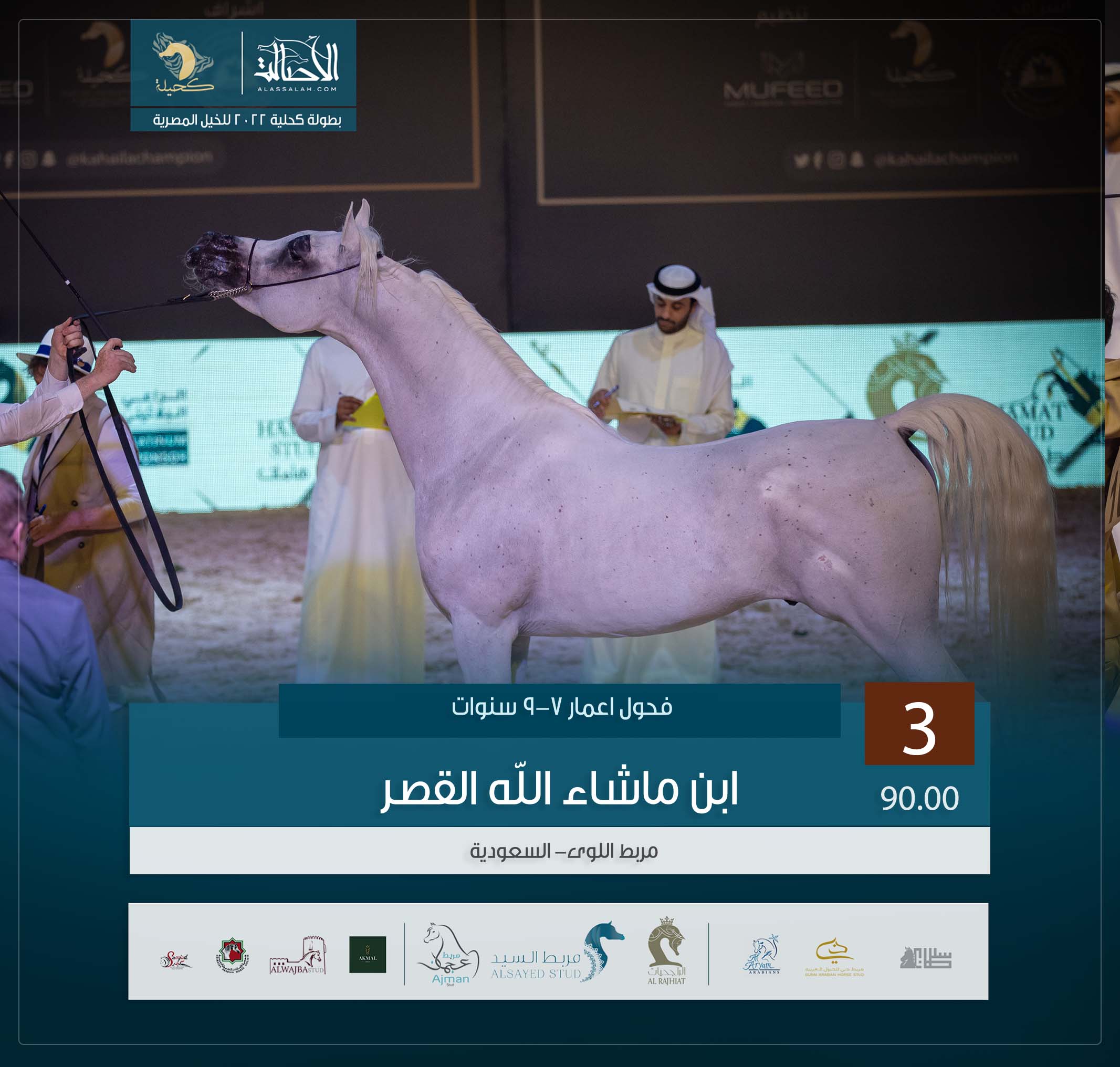 المركز الأول: سلام أكمل (نسيم الراشدية X سلمى بي كي في) مربط أكمل- السعودية.