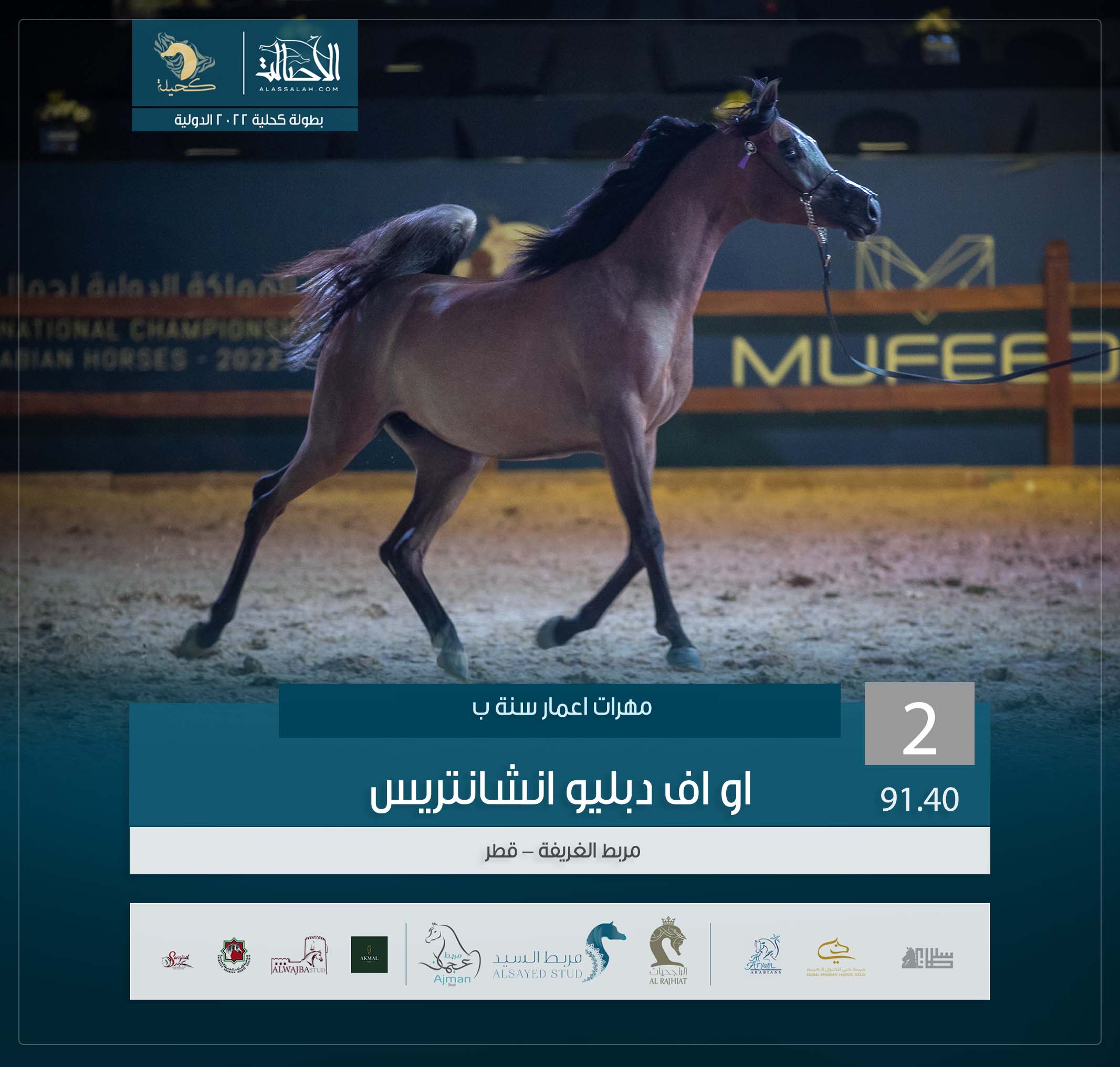 المركز الثاني: او اف دبليو انشانتريس (كنز البداير x اكسالترس) مربط الغريفة- قطر.