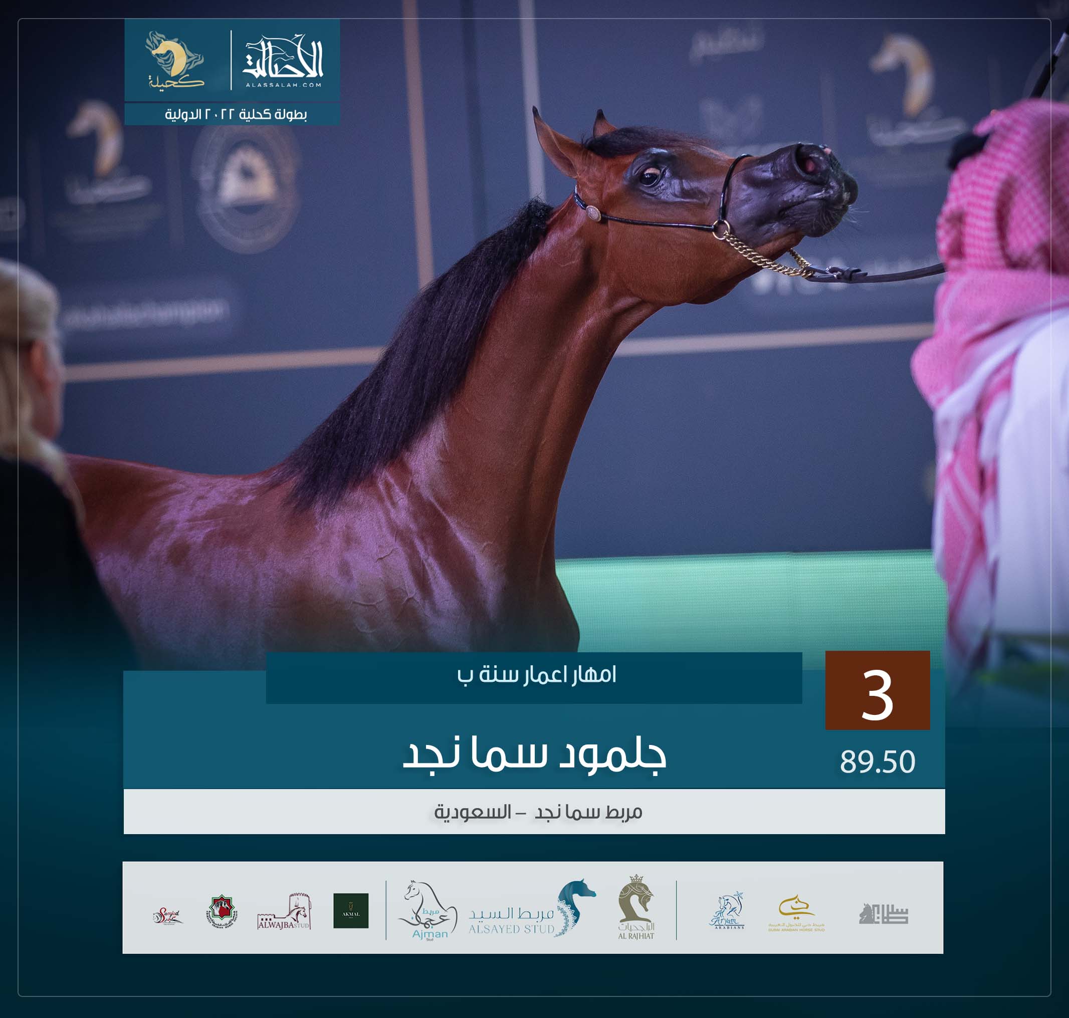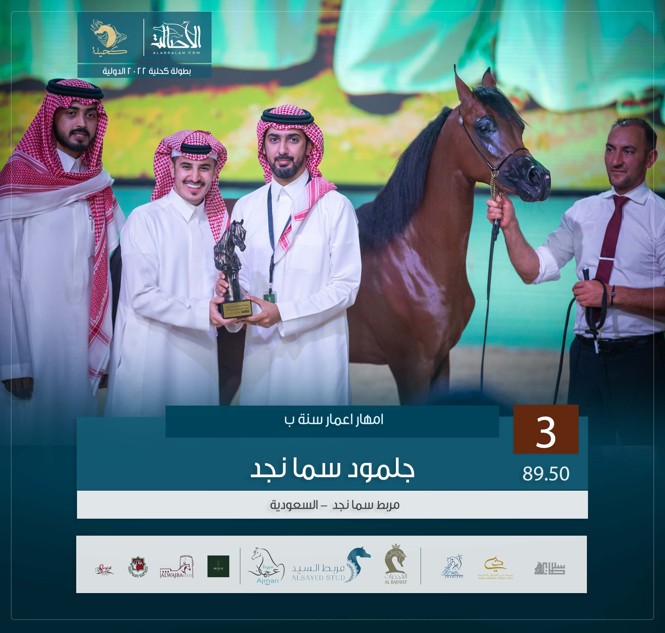 المركز الثالث: جلمود سما نجد ( فادي الشقب x بياكولا) مربط سما نجد – السعودية.