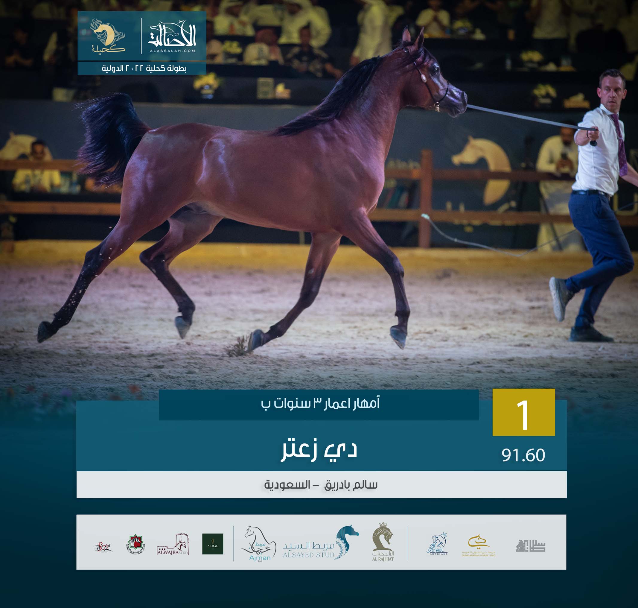 المركز الأول:دي زعتر (اف ايه الرشيم x ايه في دواسي) مربط سالم بادريق- السعودية.