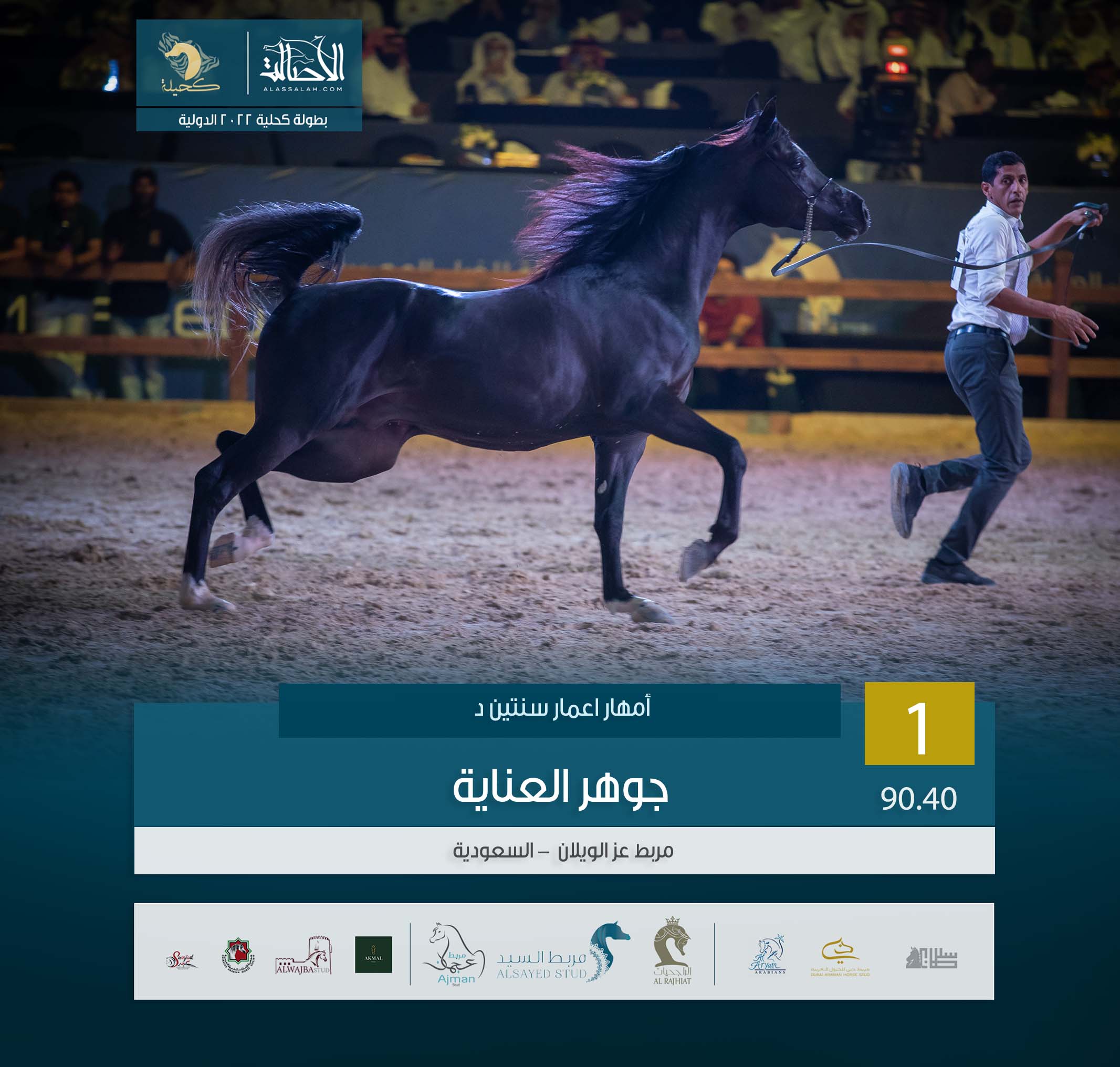 المركز الأول: جوهر العنايا (نيروز العناية x سمر العنايا) مربط عز الويلان – السعودية.