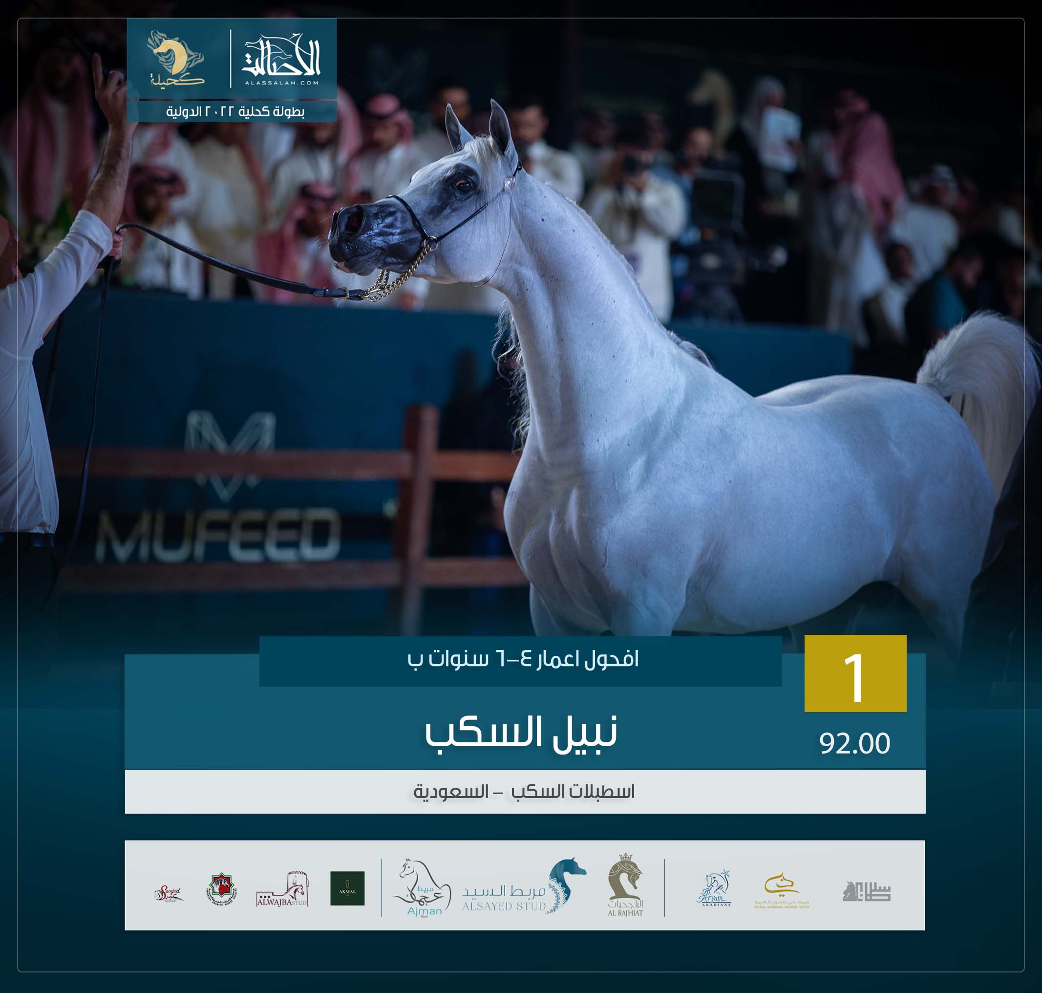 المركز الأول:نبيل السكب (اكسكاليبور اي ايه x اسكاندل ميراج تي جي اس ) اسطبلات السكب – السعودية.