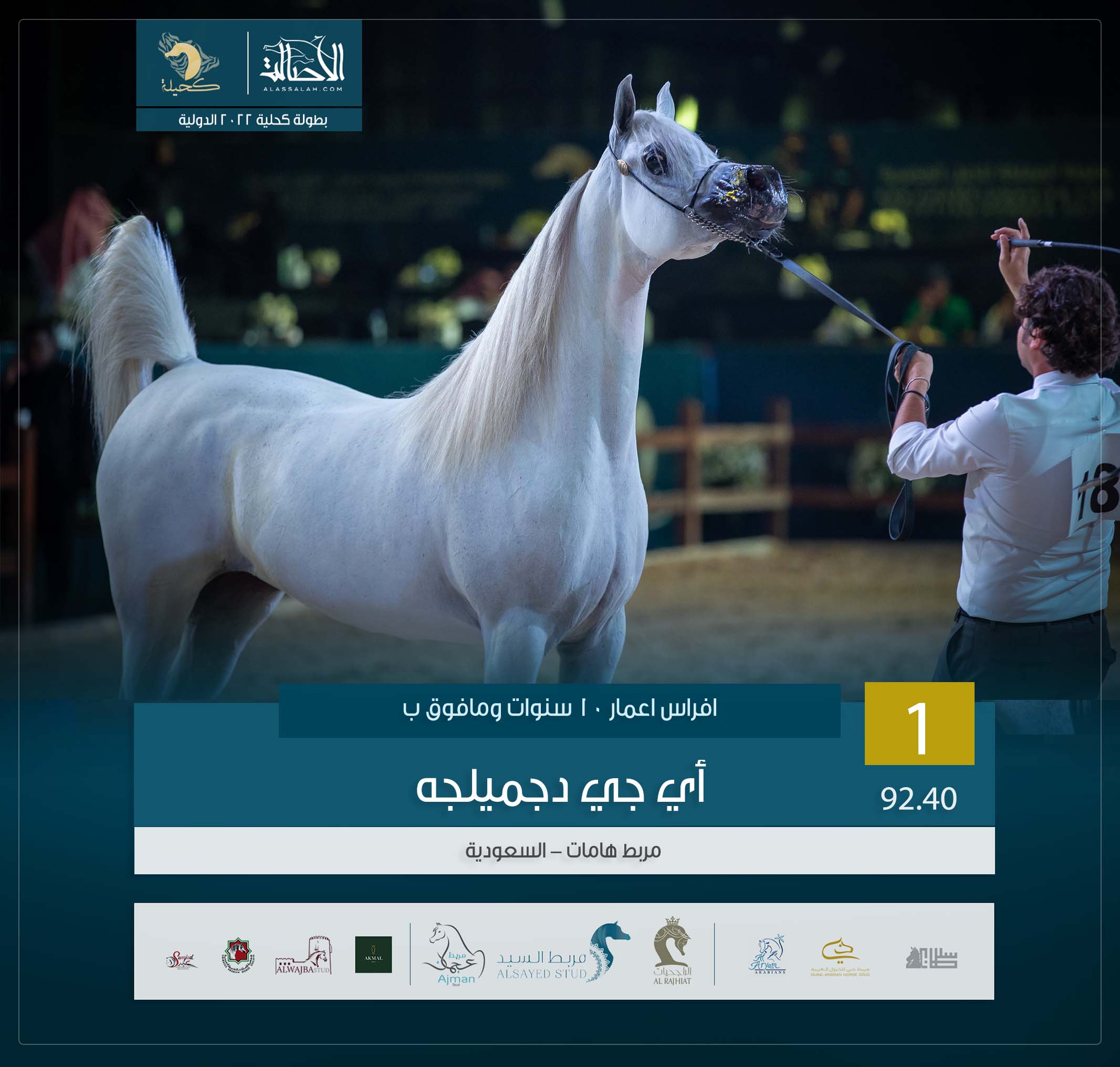 المركز الأول: ع ج دجميلجه (دبليو اتش جستس x جاسيرا برينسيس سيتاديل) مربط هامات – السعودية.