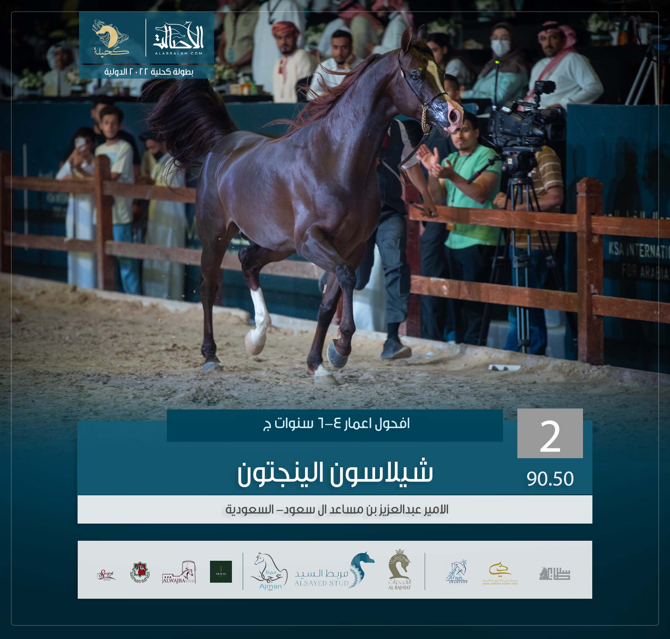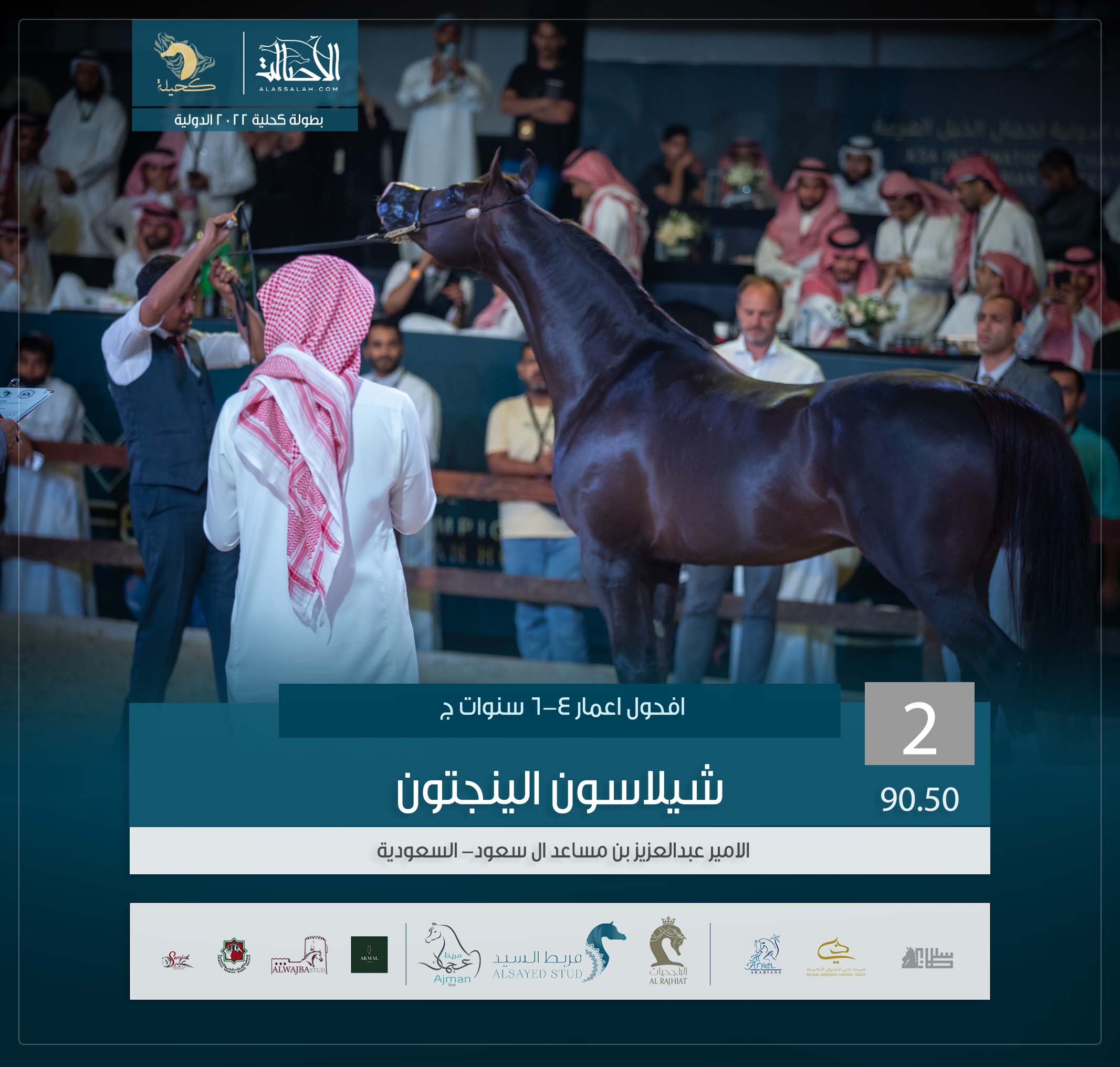 المركز الثاني:شيلاسون الينجتون (عجمان مونشيون x دبليو في شانون بي) مربط الأمير عبدالعزيز بن مساعد بن سعود آل سعود- السعودية.