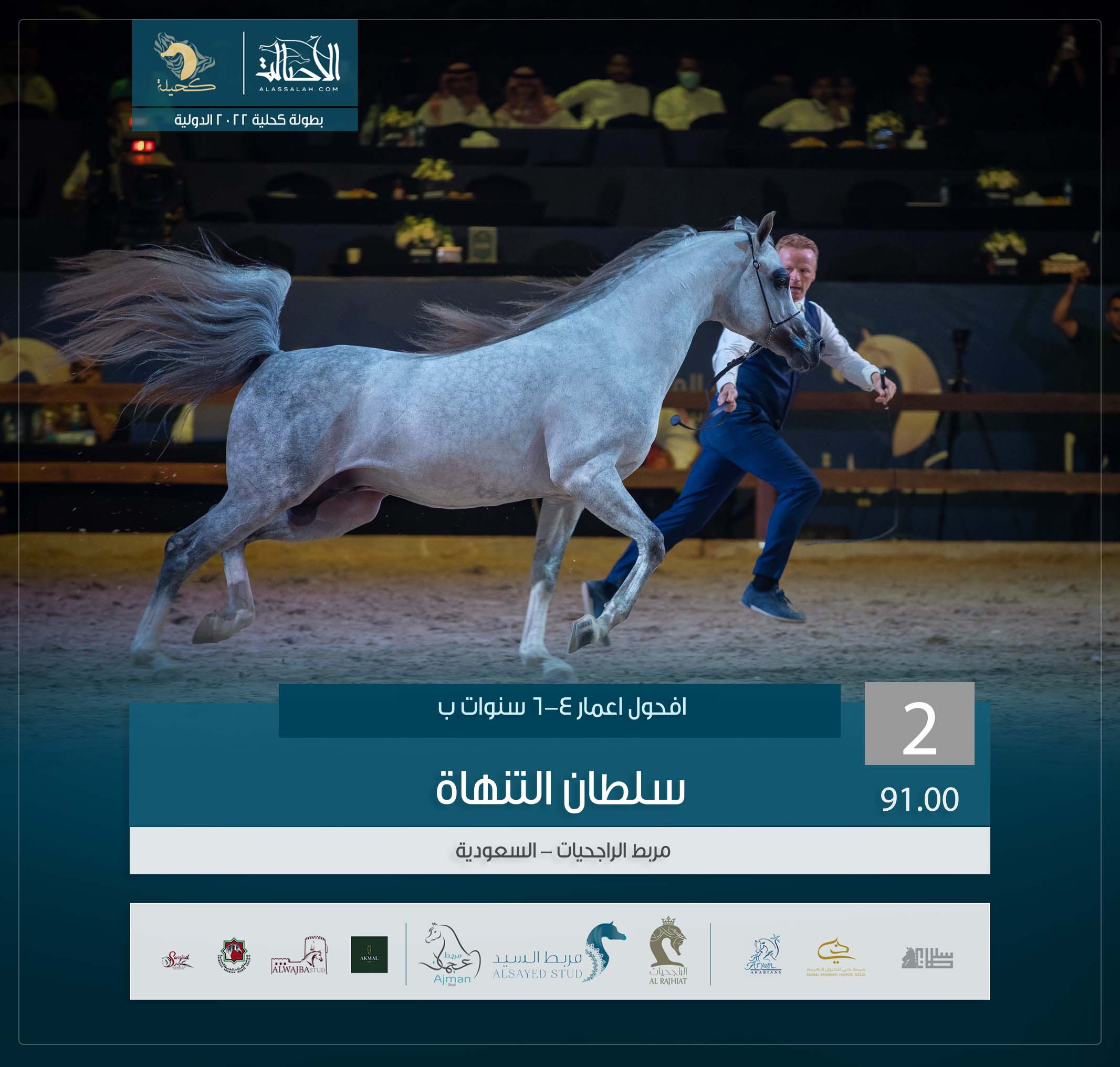 المركز الثاني: سلطان التنهاة (جلاردو جي x ع ج بسمة) مربط الراجحيات- السعودية.