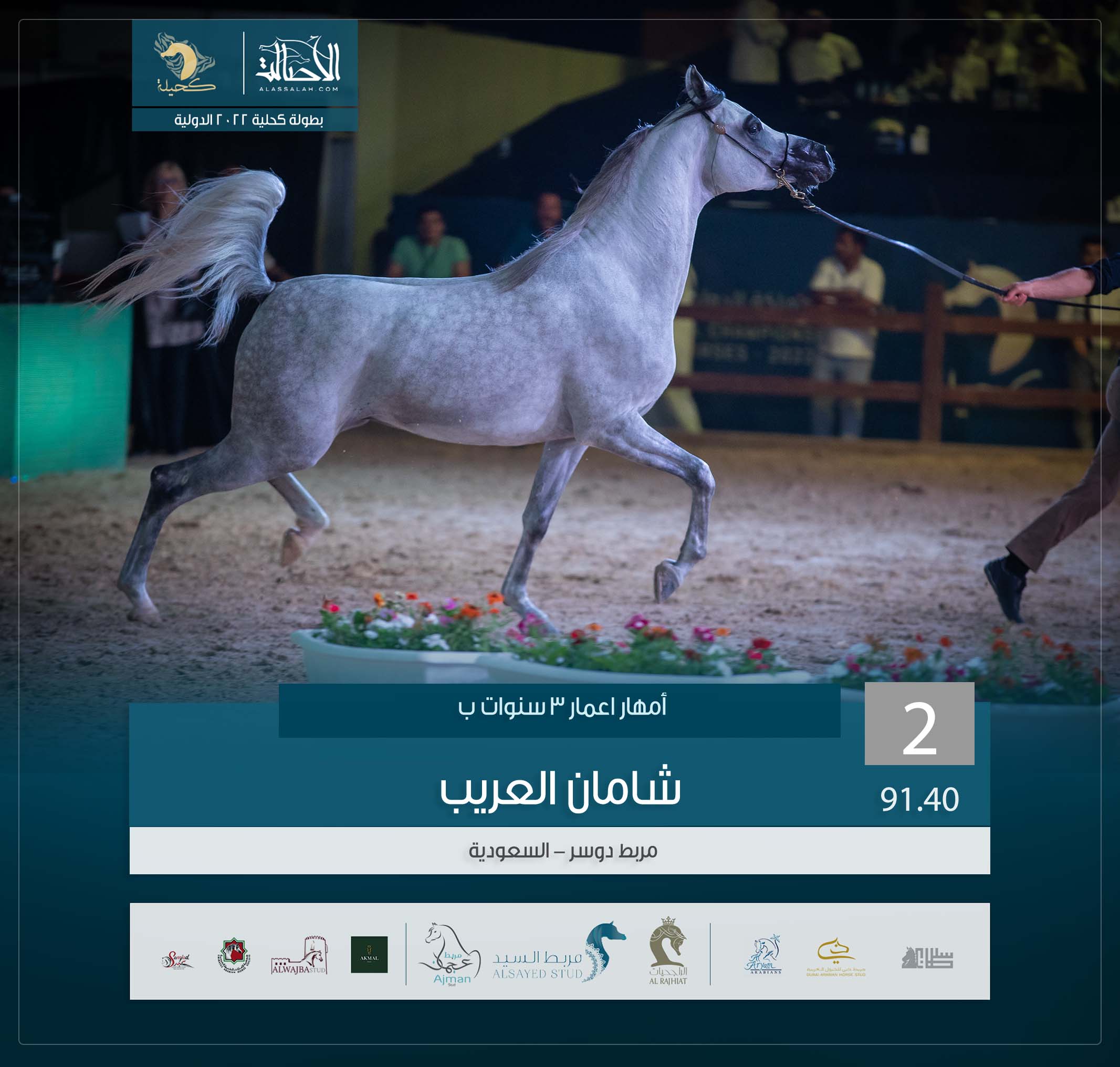 المركز الثاني:شامان العريب (اكسكاليبر اي ايه x مرجانة النواصي) مربط دوسر – السعودية.