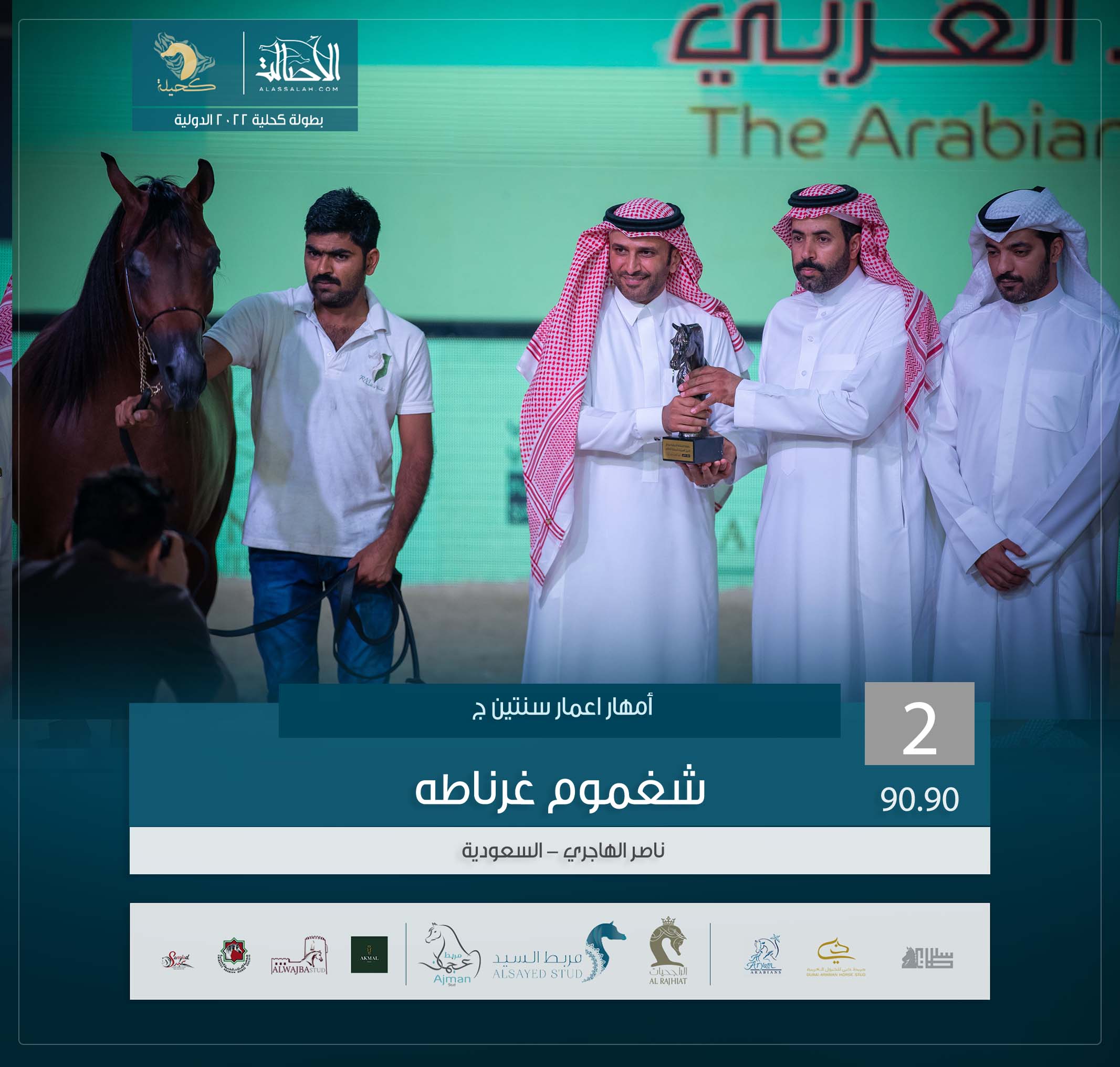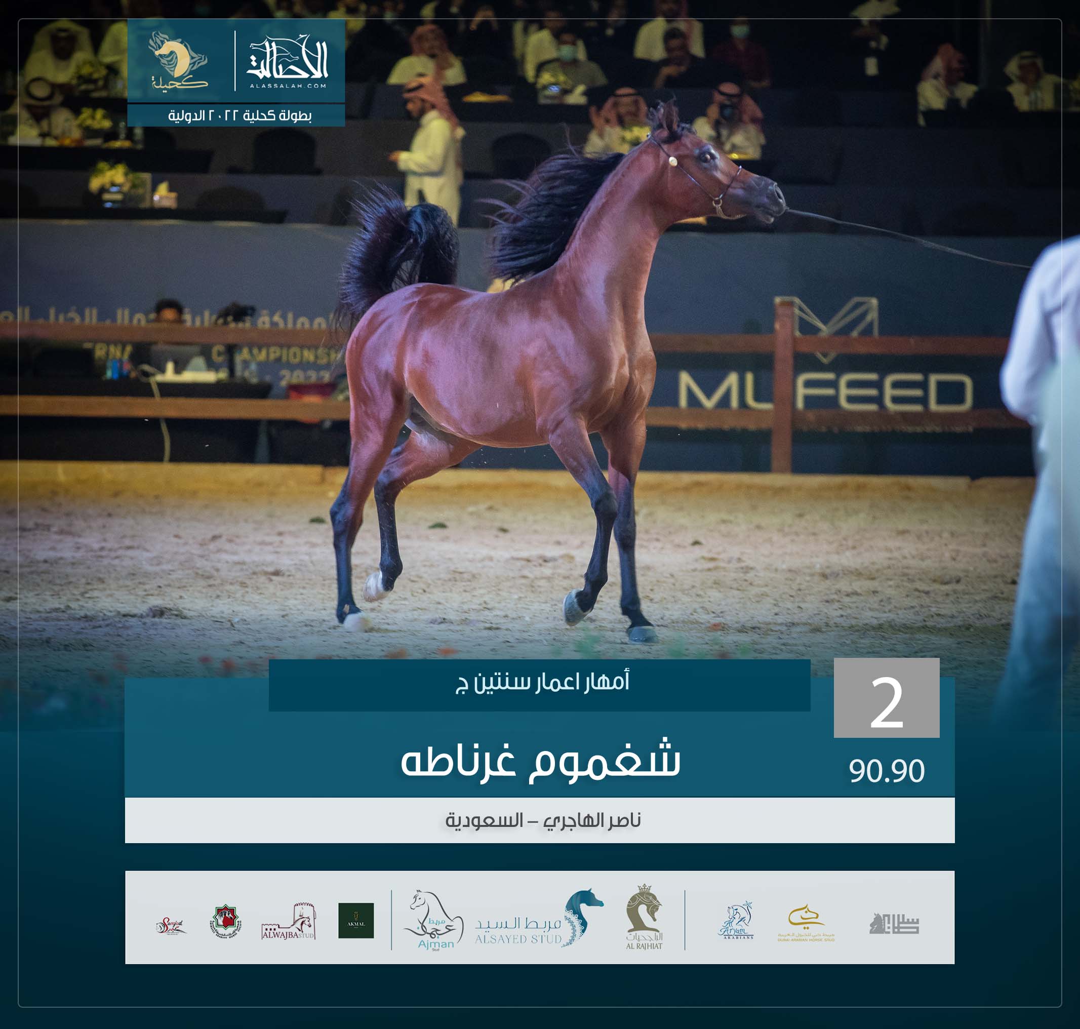 المركز الثاني:شغموم غرناطة (كنز البداير x ايسنس اوف جولد اس اف) مربط ناصر الهاجري- السعودية.