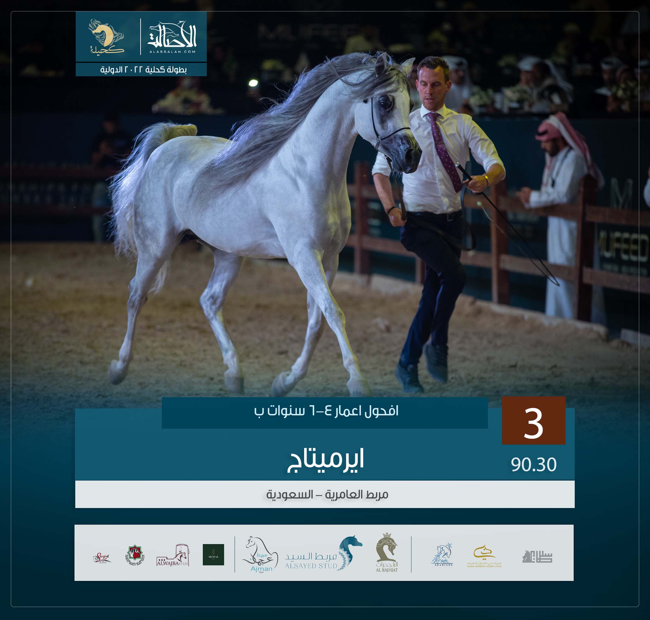 المركز الثالث:ايرميتاج ( كيو ار مارك x امندوريا) مربط العامرية – السعودية.