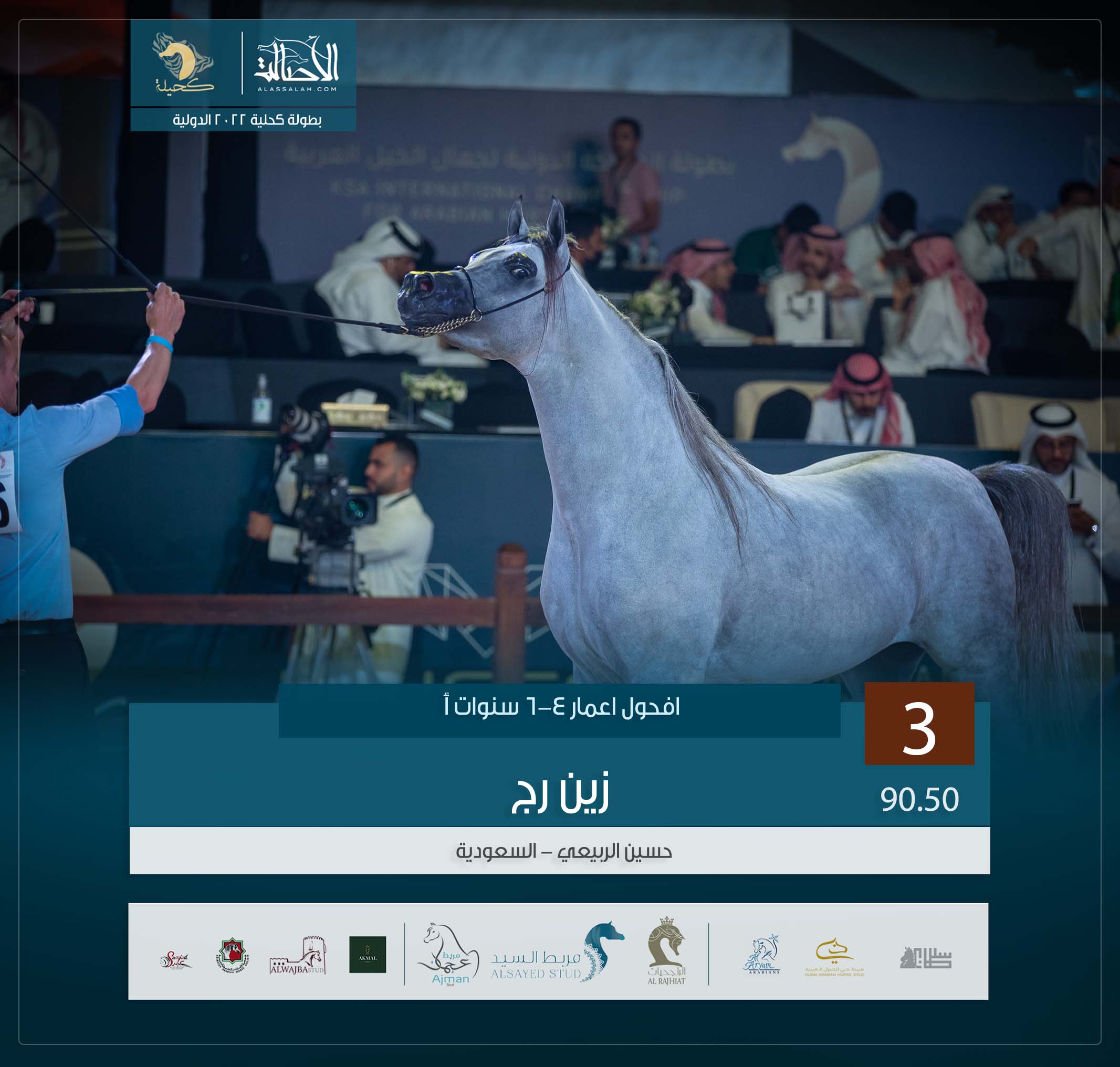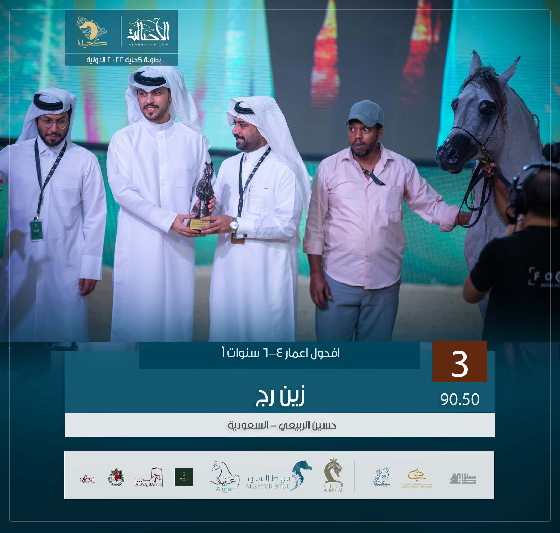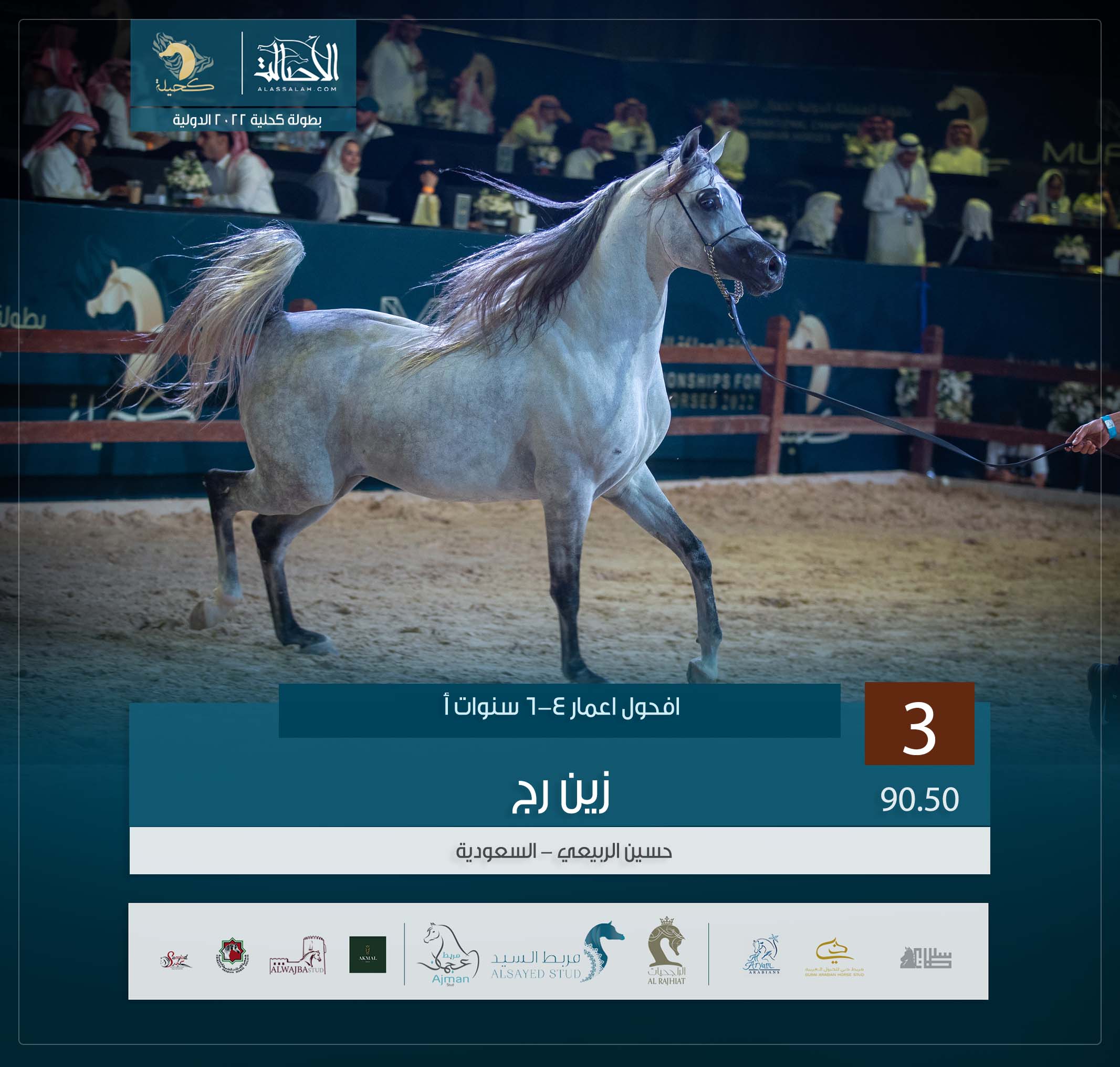 المركز الثالث:زين آر جي ( كحيل الشقب X زيناريا) حسين سالم الربيعي – الكويت.
