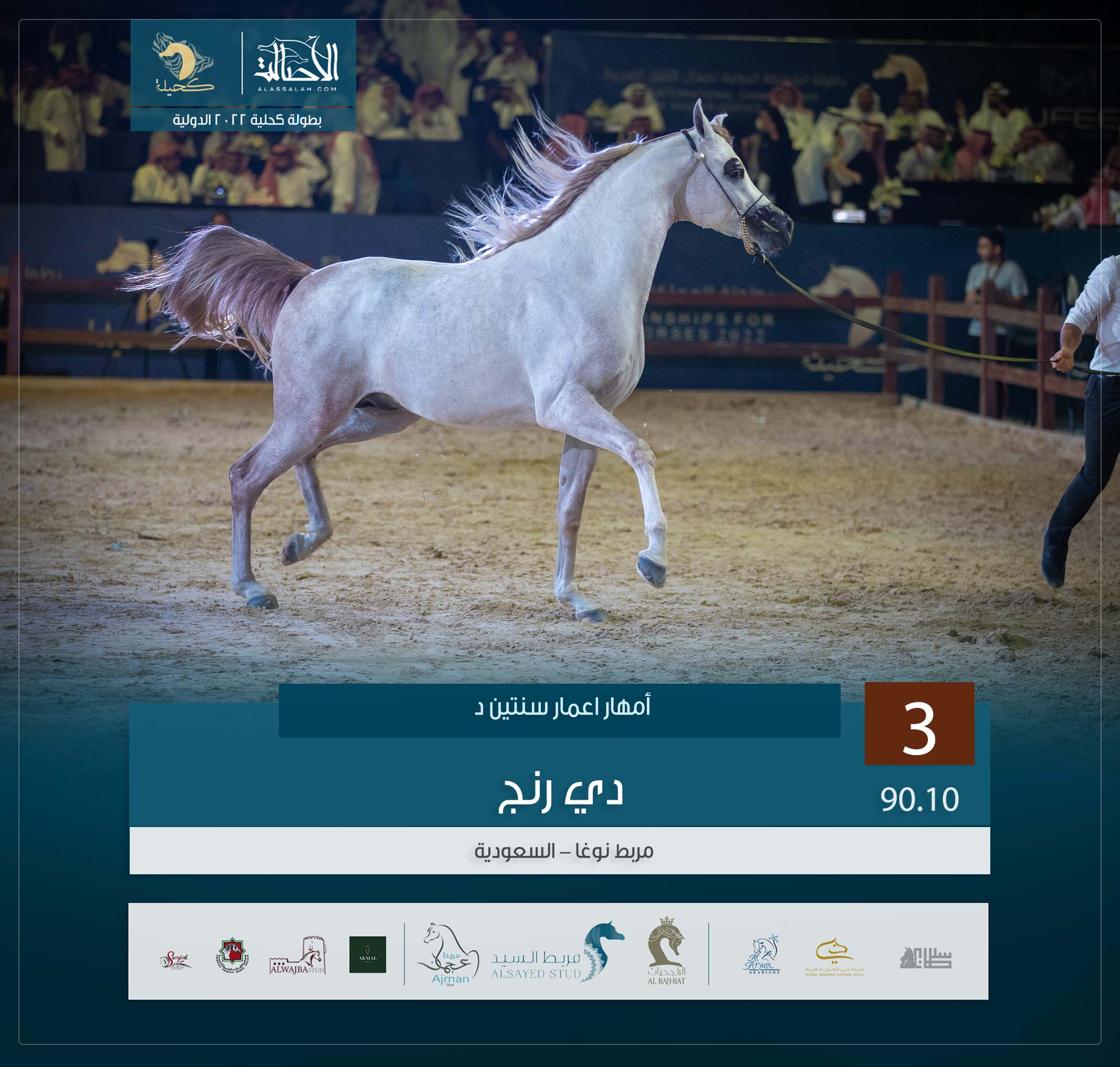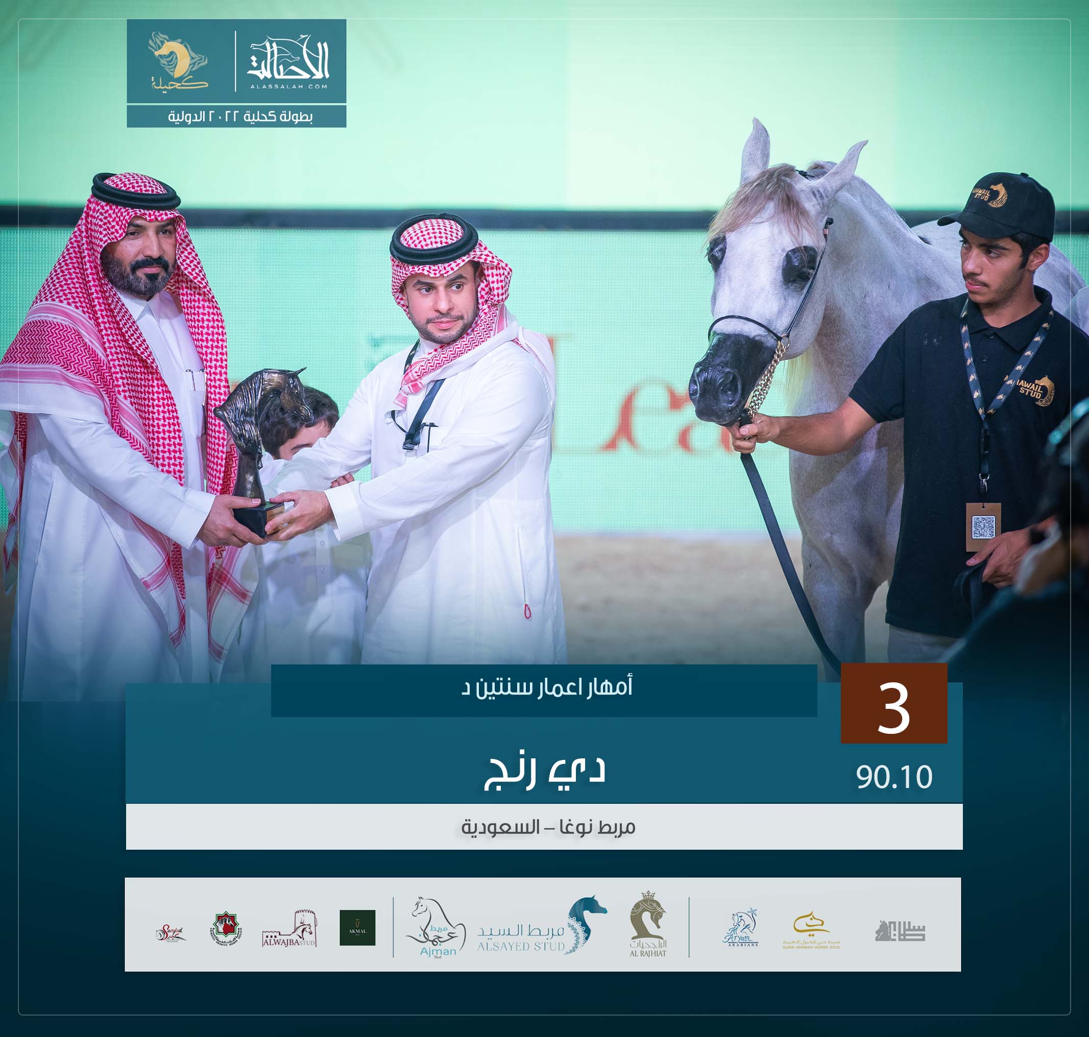 المركز الثالث: دي رنج (اف ايه الرشيم x دي نوال ) مربط نوغا- السعودية.
