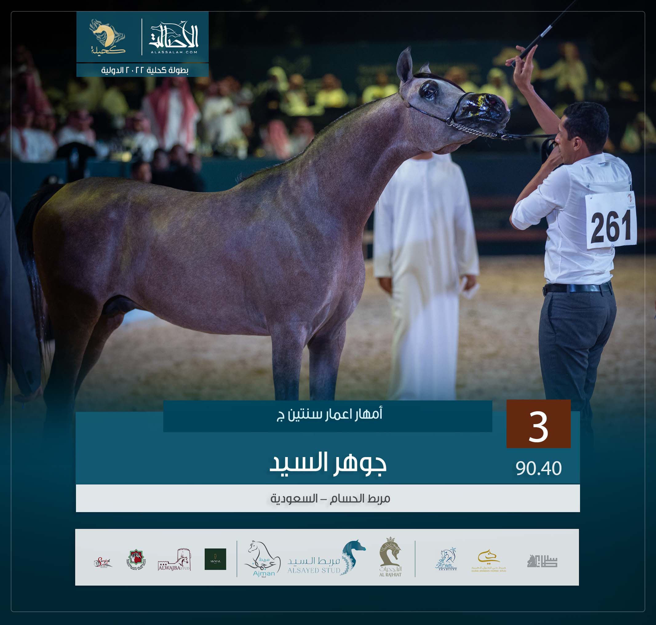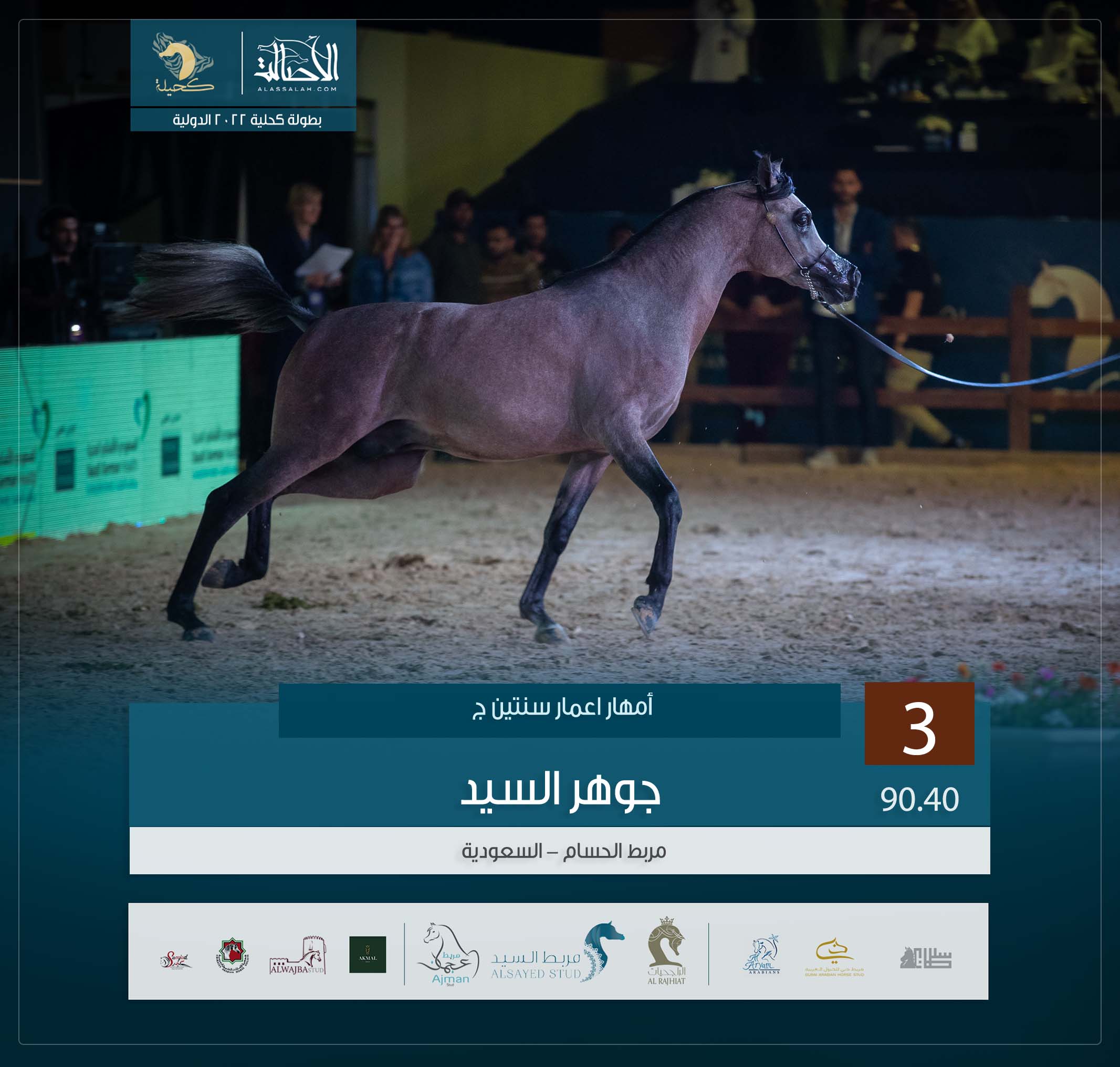 المركز الثالث:جوهر السيد (اليكساندر x جوهرة الصحراء) مربط الحسام- السعودية.