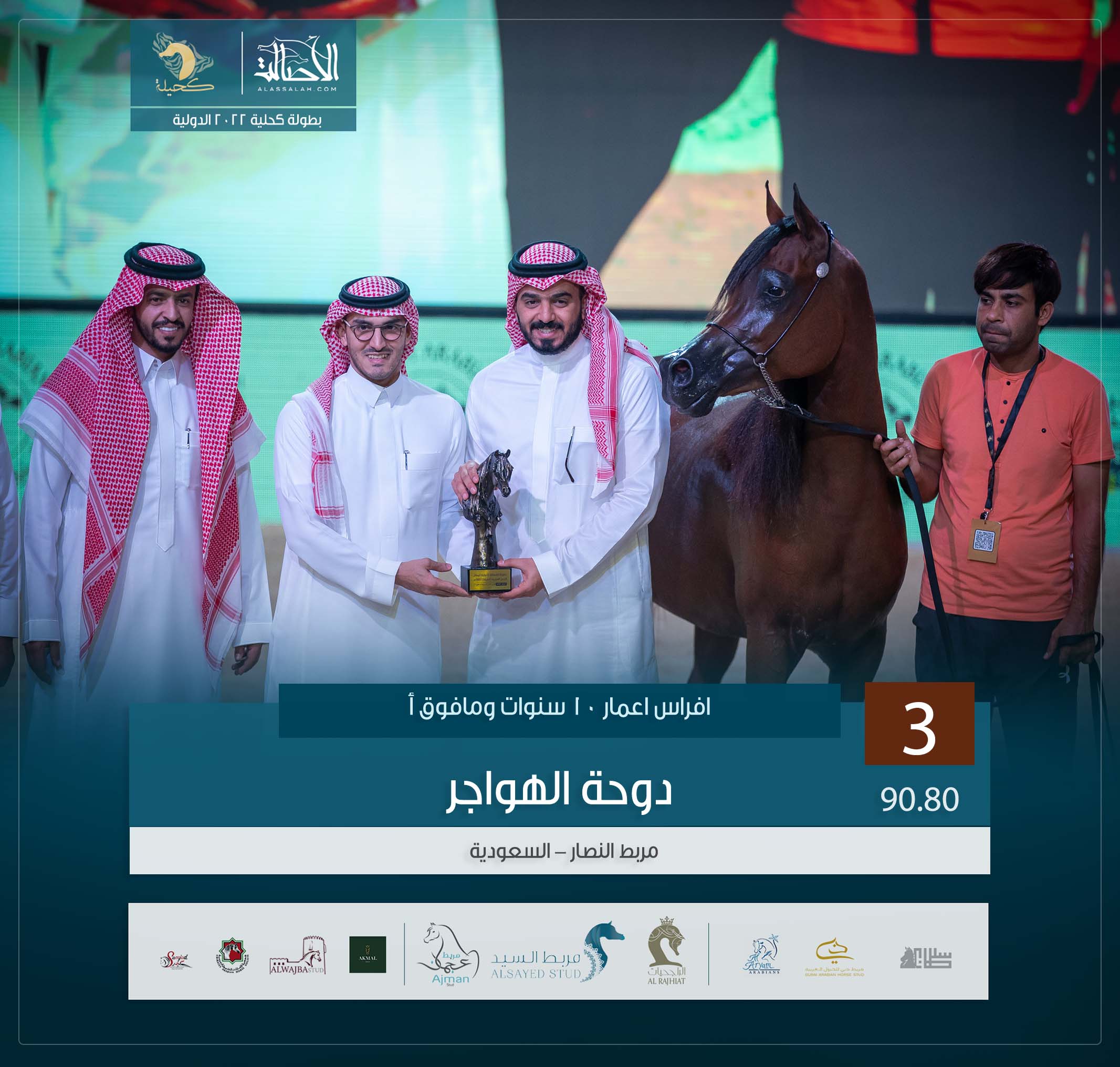 المركز الثالث: دوحة الهواجر (مراج x جامبليا) مربط النصار – السعودية.