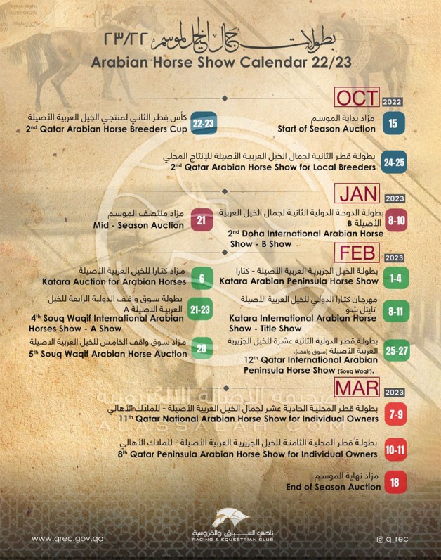 14 بطولة وفعالية خلال موسم (2022 -2023) لعروض الخيل العربية في قطر
