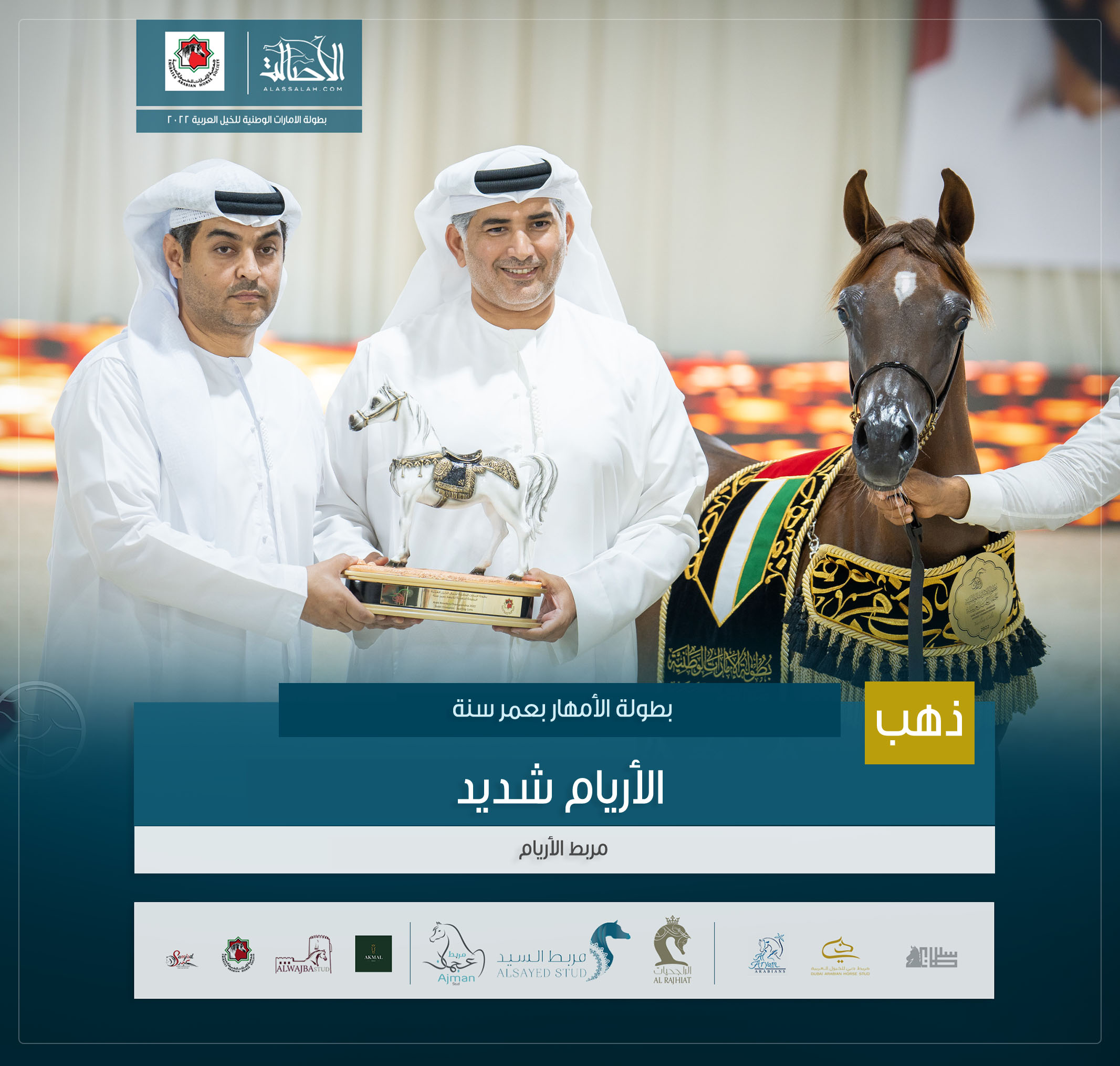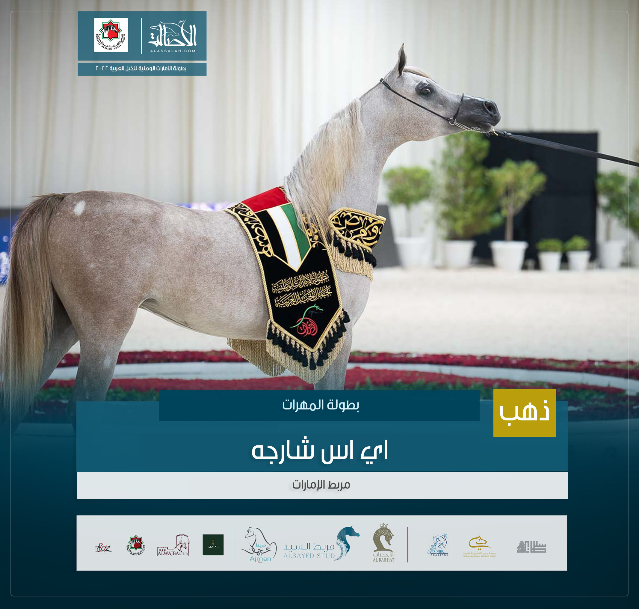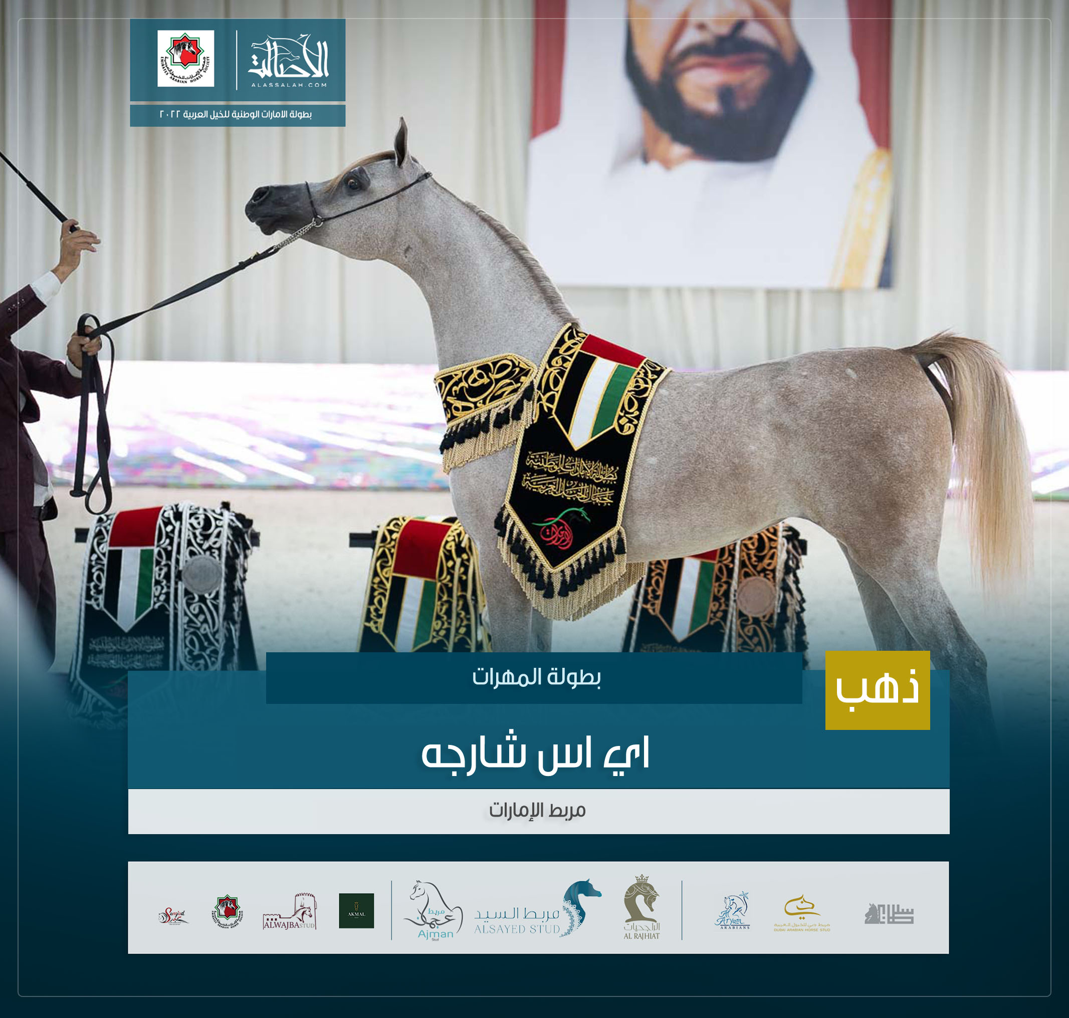 الذهب: إ س شارقة (إي اس سراب x إي اس رشيدة ) مربط الشيخ عبدالله بن ماجد القاسمي .