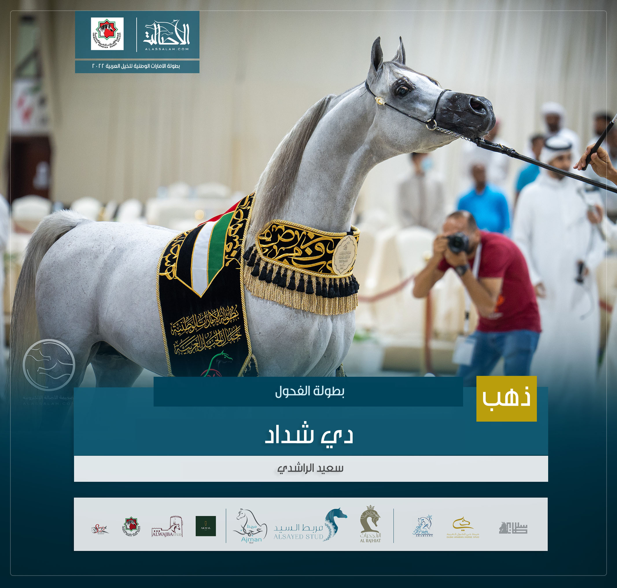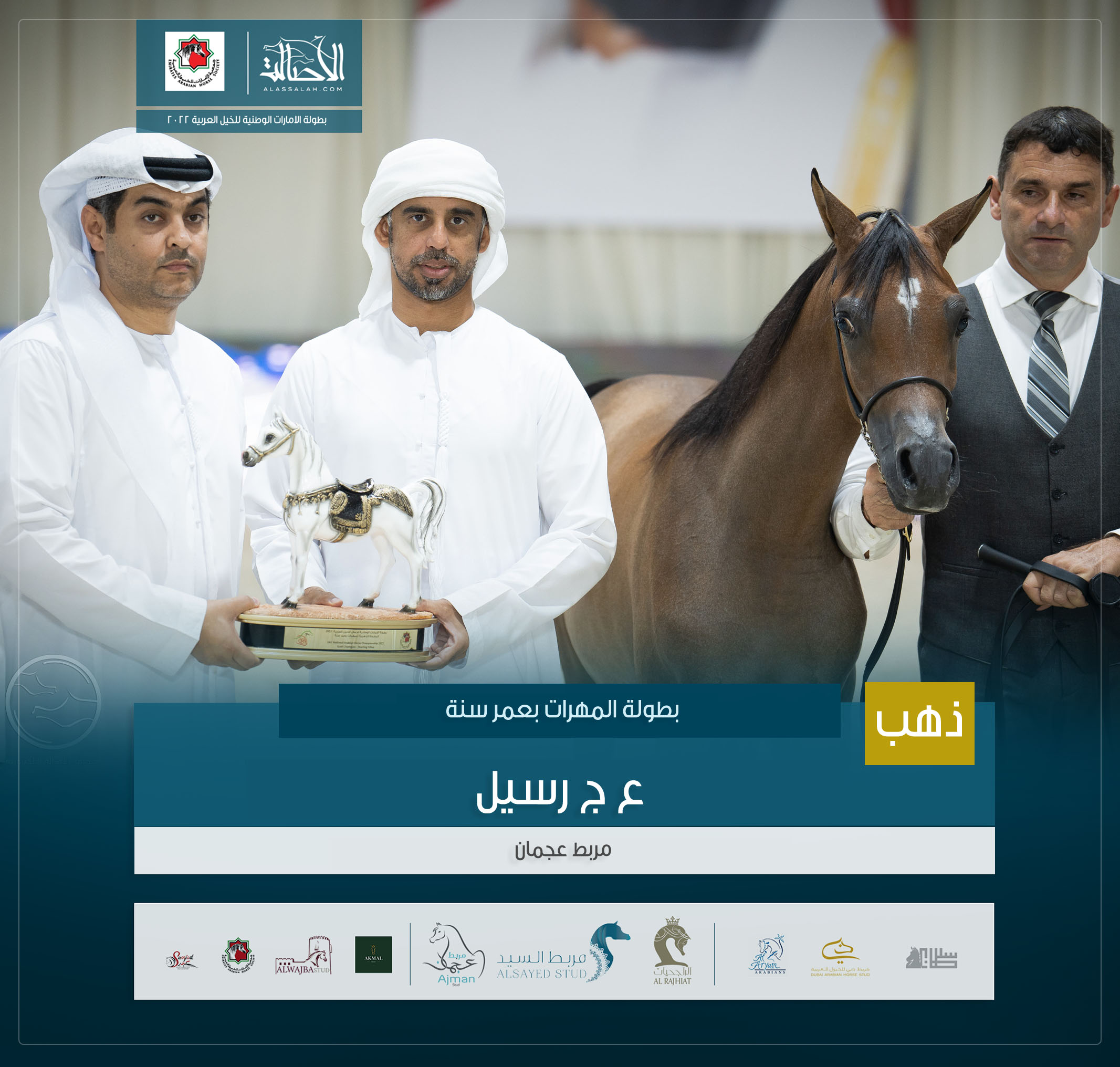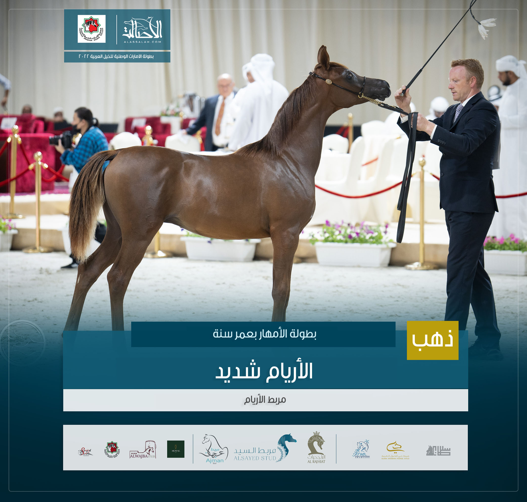 الذهب: إ س شارقة (إي اس سراب x إي اس رشيدة ) مربط الشيخ عبدالله بن ماجد القاسمي .
