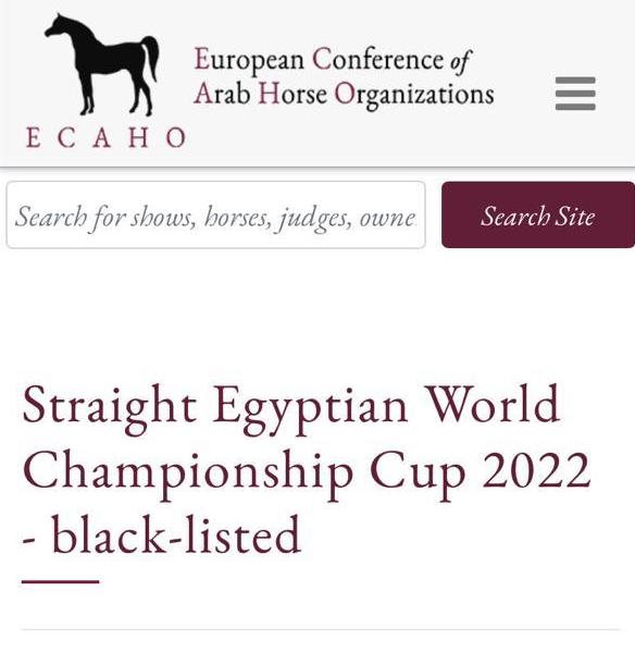 إدراج بطولة كأس العالم للخيول العربية الأصيلة – السلالة المصرية، في القائمة السوداء.